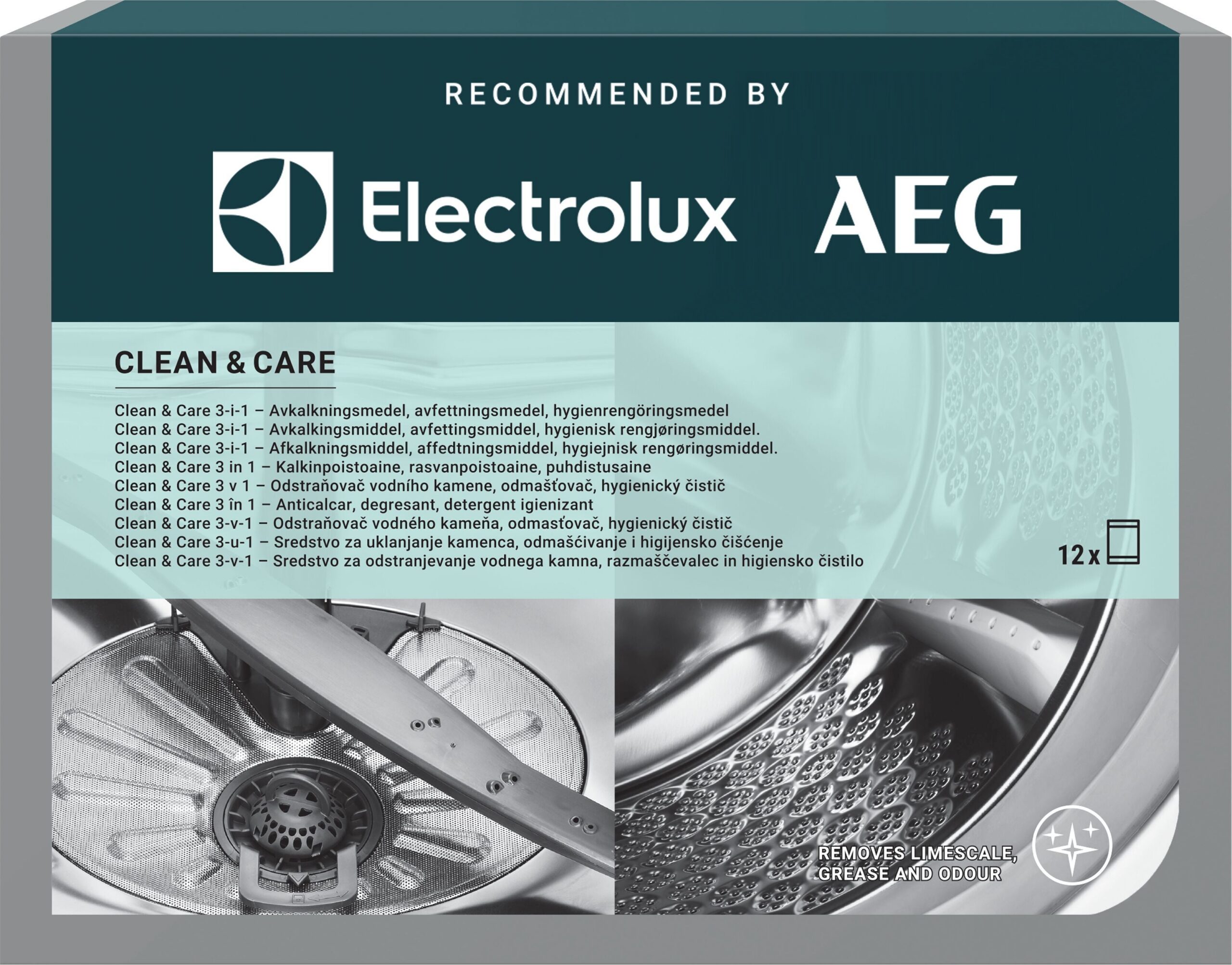 Puhastus ja hooldus 3in1. Katlakivi eemaldaja, rasvaeemaldaja ja desinfitseerimisvahend nõudepesumasinatele ja pesumasinatele ühes kotis.
