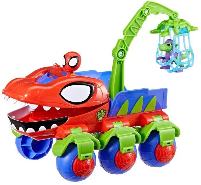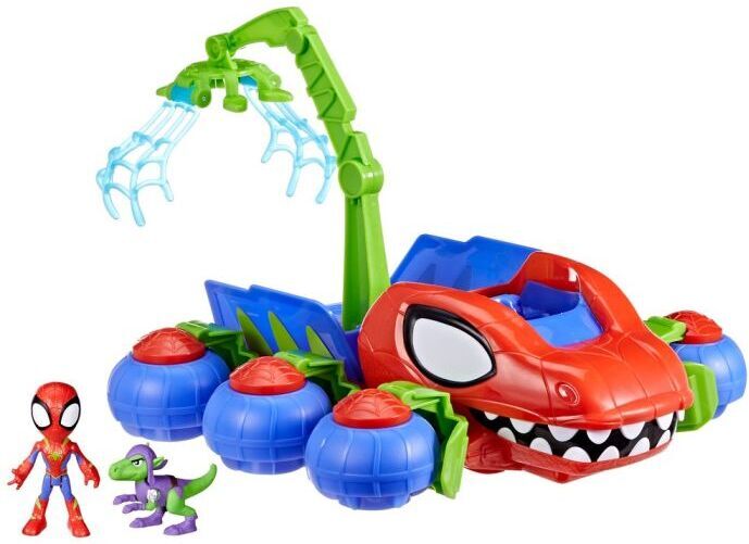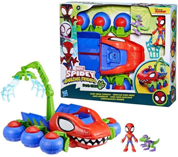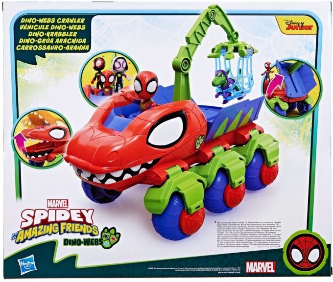 Dino sõidukil on dinosauruste püüdmiskonks ja puur tüütute kaabakate transportimiseks! Pakendis on ka 10 cm pikkune Ämblikfiguur oma uues Dino ülikonnas ja Dino kaabakas.
