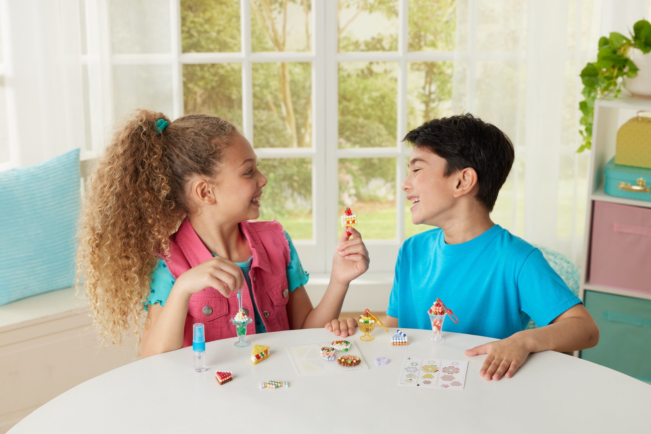 Aseta helmed kompositsioonialusele vastavalt šabloonile ja loo jäätiseportsjoneid, kooke, jäätist ja palju muud. Pihusta helmestele vett ja need kleepuvad võluväel kokku!