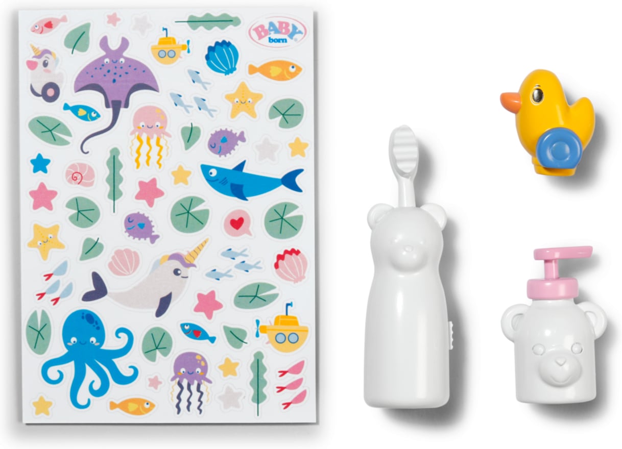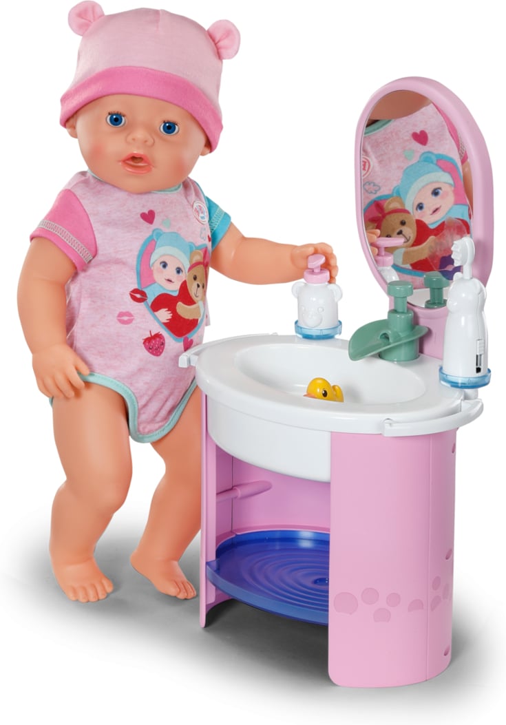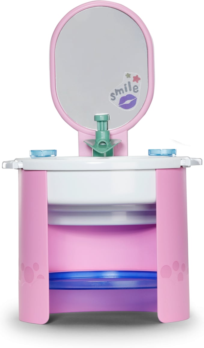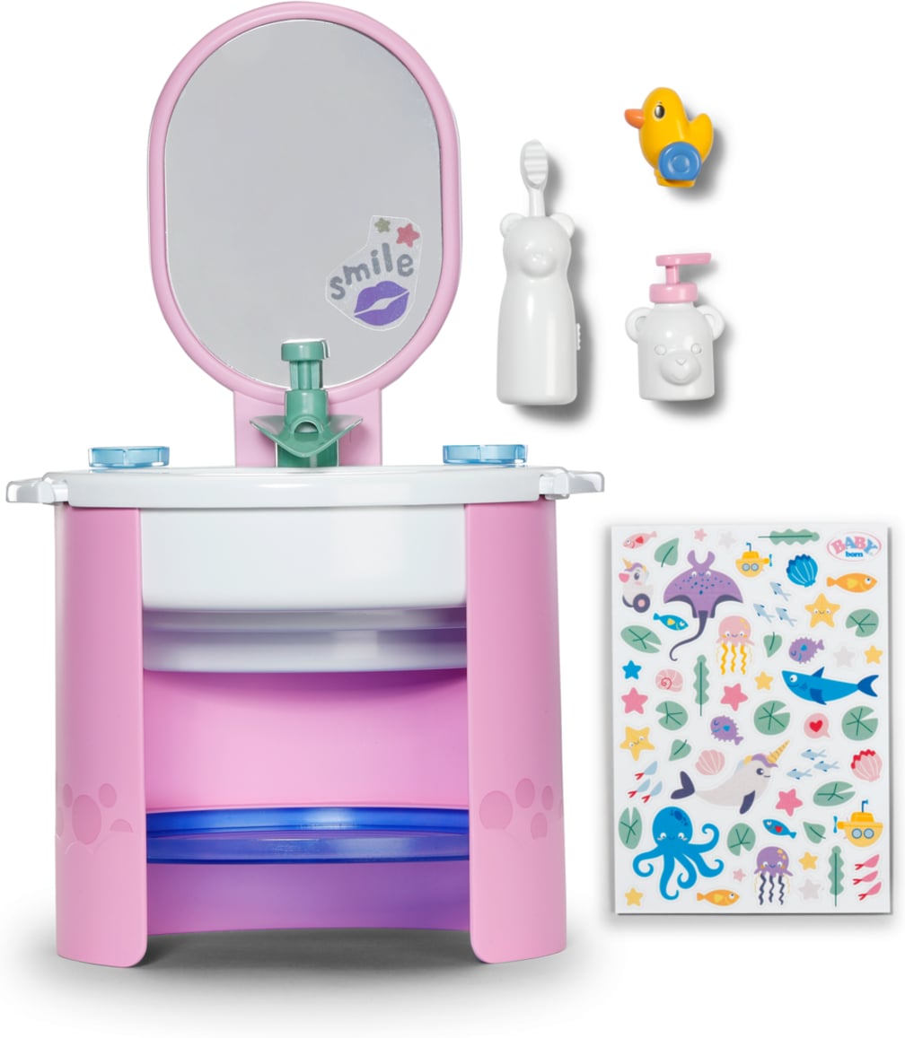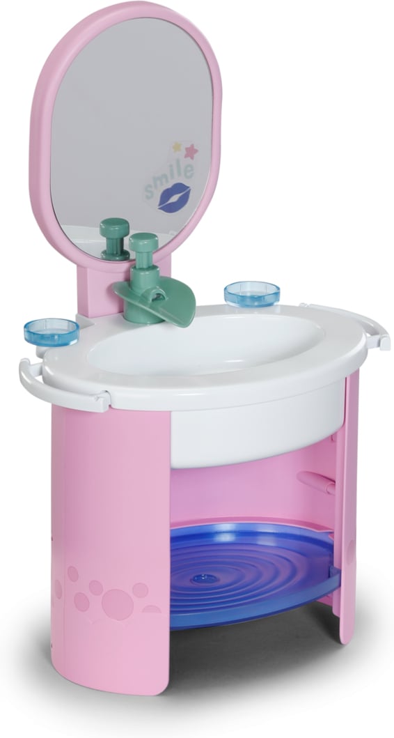 Peegliga kraanikauss, töötav veekraaniga pumba funktsioon. Kraanil on armas pardipistik. Komplektis on ka lisatarvikud, näiteks mehaaniliselt töötav ja vibreeriv hambahari.
