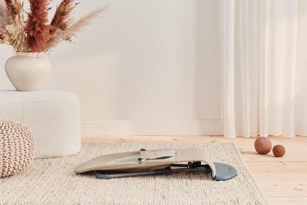 BabyBjörn Bouncer Balance Soft hüppetooli saab kasutada kolmes erinevas asendis. Mänguasendist puhkeasendisse reguleerimine on lihtne ja vaikne. Kooskõlas säästva arenguga koosneb Soft Woven mudeli pehme istmetekstiil taaskasutatud polüestrist ja orgaanilise puuvilla segust.