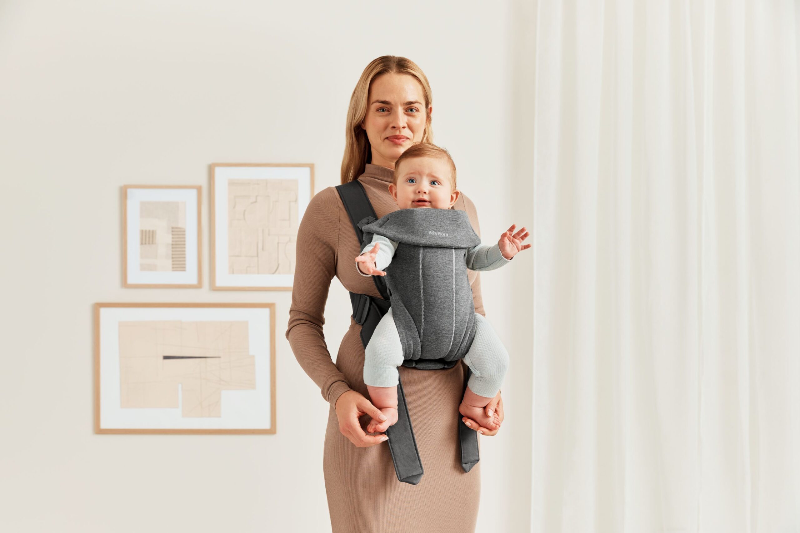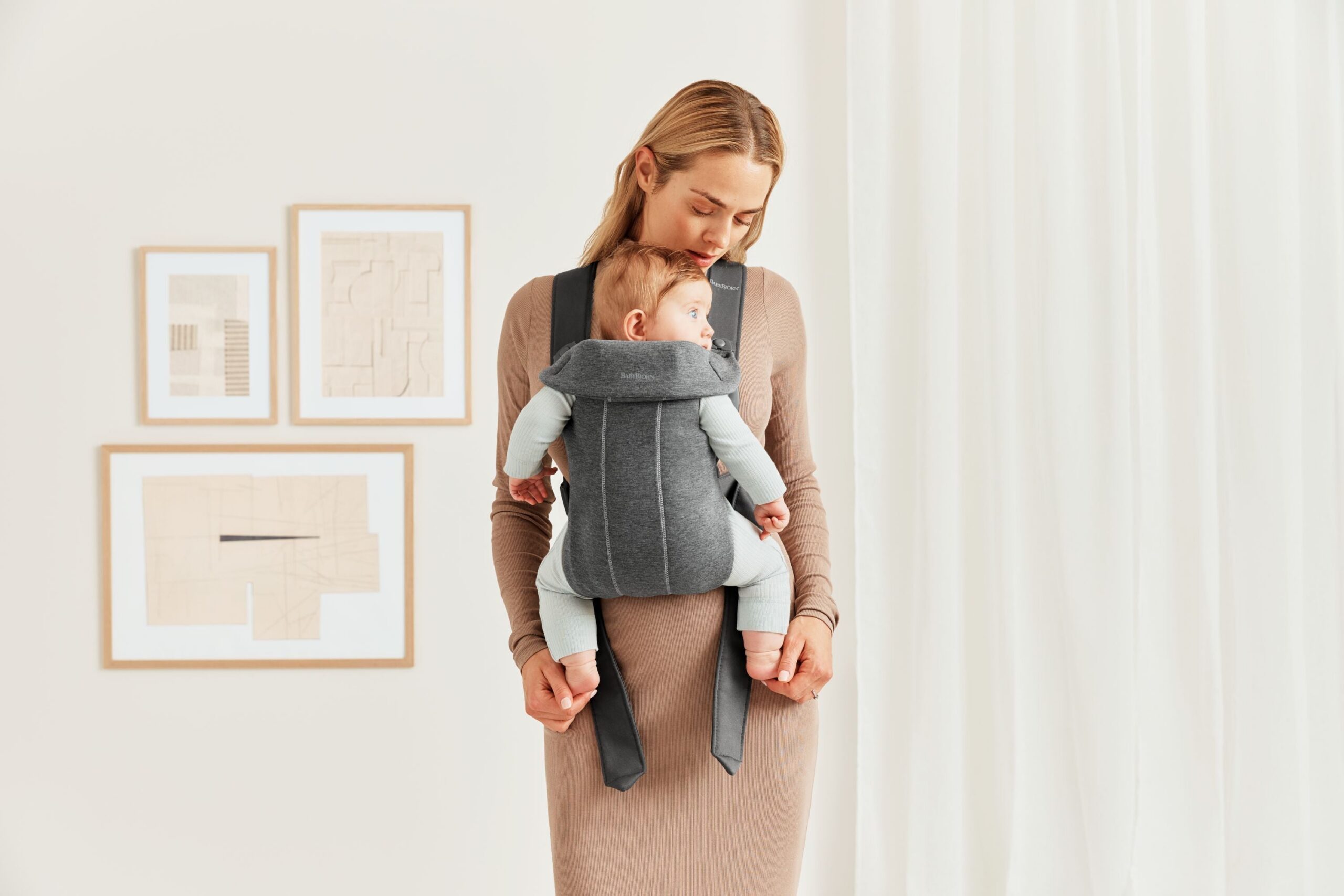 BabyBjörn Mini on väike, hõlpsasti kasutatav ja väga pehme kandekott vastsündinutele.