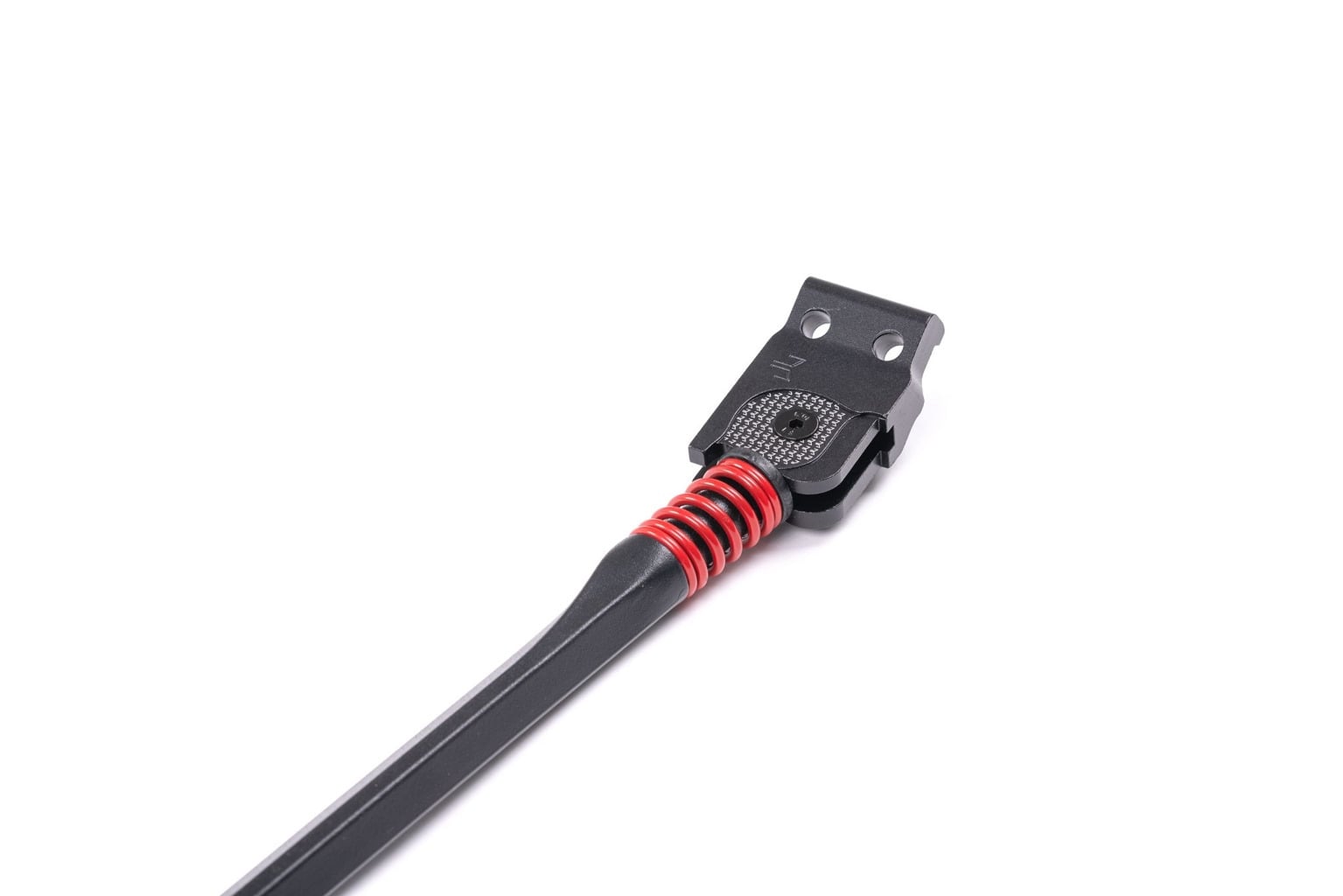 Kevyt polkupyörän seisontatuki, joka on suunniteltu helpottamaan pyörän pysäköintiä ja tukemaan sitä paikallaan. Se on valmistettu kevyestä materiaalista, ja sen paino on vain 128 g.
