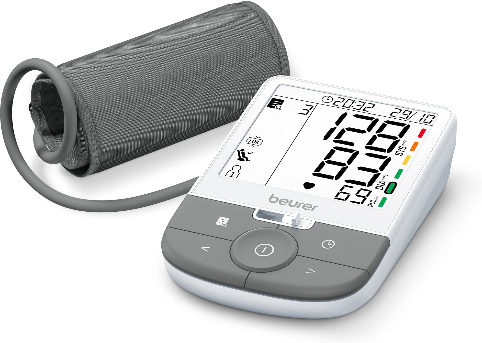 Beurer BM53 vererõhumõõtjal on suur ja selge ekraan, mis koos mõõtmistulemuste värvikoodidega klassifikatsiooniga muudab väärtuste ülevaatamise lihtsaks ja intuitiivseks. Seadmel on täiustatud arütmia tuvastamise funktsioon, mis tuvastab võimaliku kodade virvenduse ja aitab seega ennetada insulte.