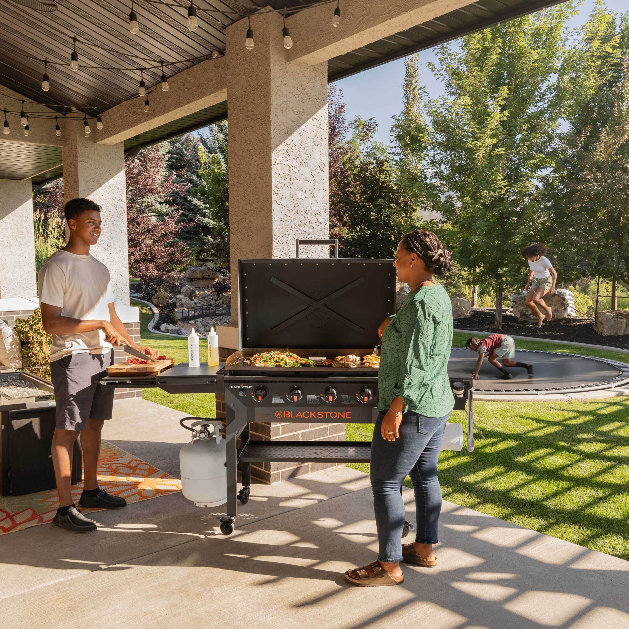 Riko rajoja Blackstone Iron Forge Omnivrore 36” ParilaGrillillä. Uudelleen suunniteltu 36” ParilaGrilli näyttää tyylikkäältä ja tarjoaa tehokkaan suorituskyvyn. Uuden Omnivore parilalevyteknologian ansiosta voit valmistaa aterioita aivan uudella tavalla; parila kuumenee nopeammin, tasaisempi lämpö sekä nopeampi uudelleen lämpeneminen ja tämä kaikki saavutetaan vähemmällä kaasunkulutuksella. Laajennettavan sivuhyllyn ja uuden sivuhyllyjen kiskojärjestelmän ansiosta sinulla on tilaa kokeilla, innovoida ja rakentaa täydellinen ulkoruoanlaittopaikkasi. Valmista täydellisiä aterioita aamiaiseksi, lounaaksi ja illalliseksi tämän tehokkaan parilagrillin avulla.