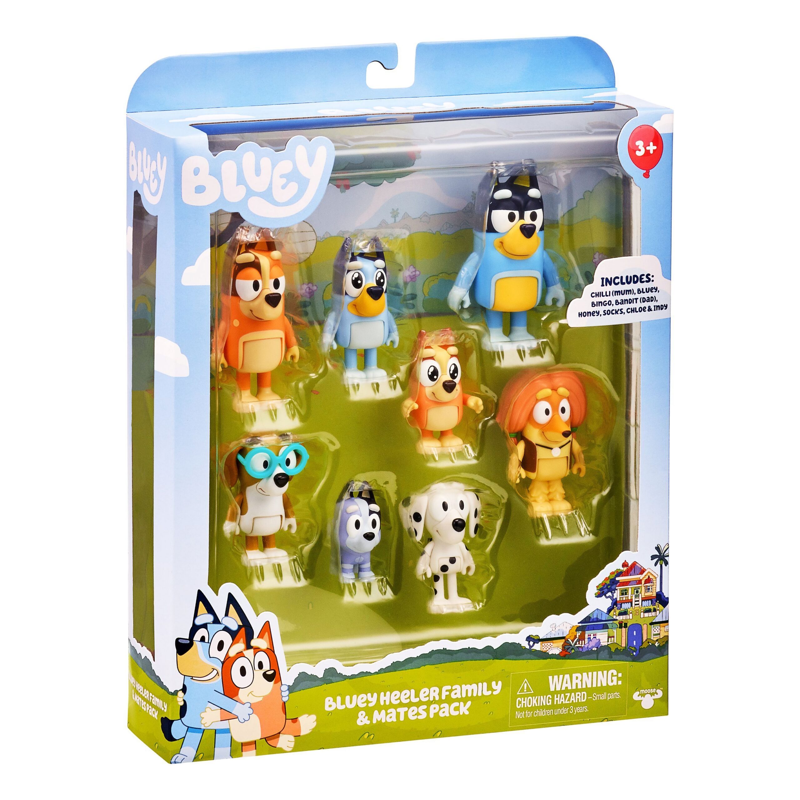 Bluey figuuride mitmikpakk on armas figuuripakk, mis sisaldab kaheksat populaarset tegelast Bluey animasarjast. Pakis on Bluey perekonna liikmed – Bluey, Bingo, Bandit (isa) ja Chilli (ema) – ning neli Bluey ja Bingo sõpra: Coco, Snickers, Rusty ja Muffin123. Tegelased on liigutatavad, mis muudab mängu veelgi lõbusamaks.