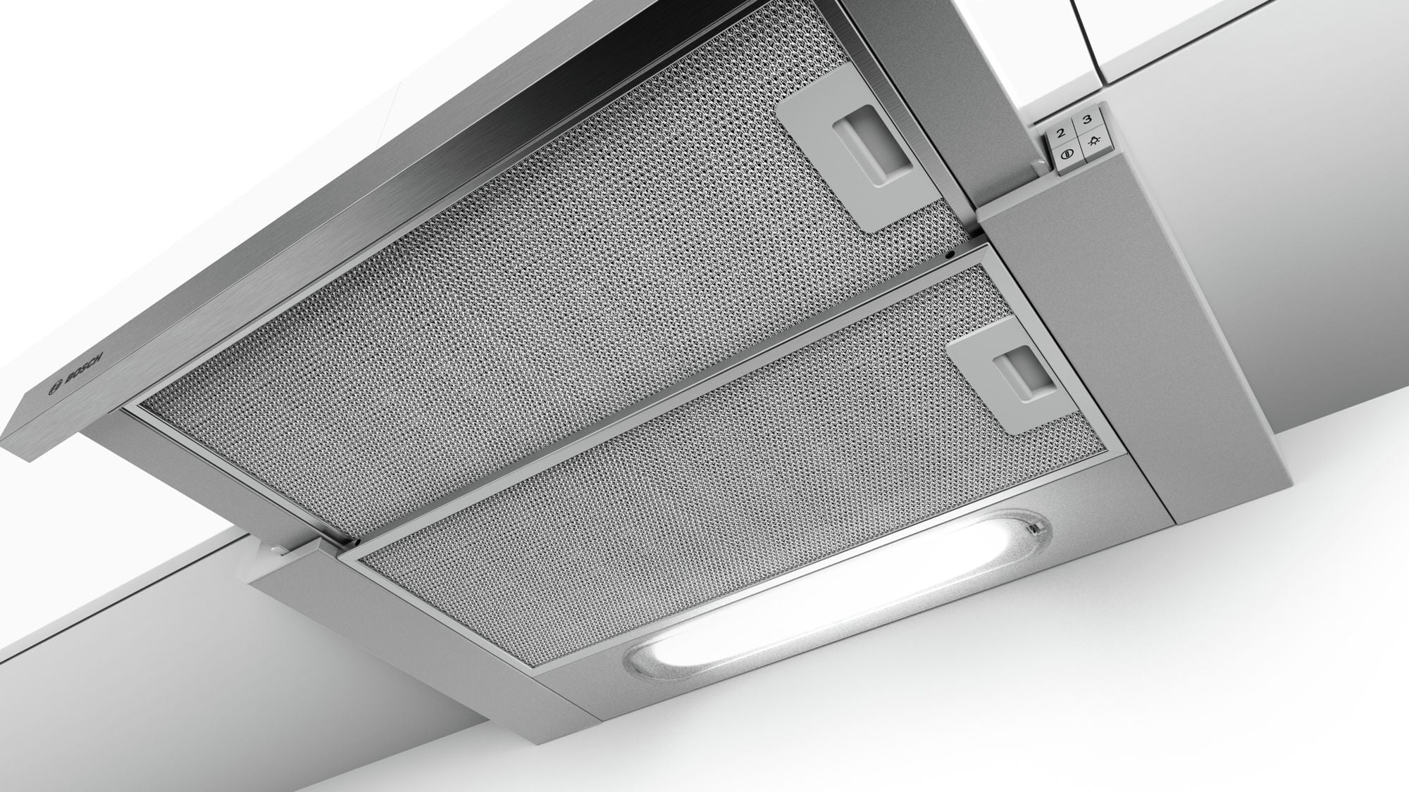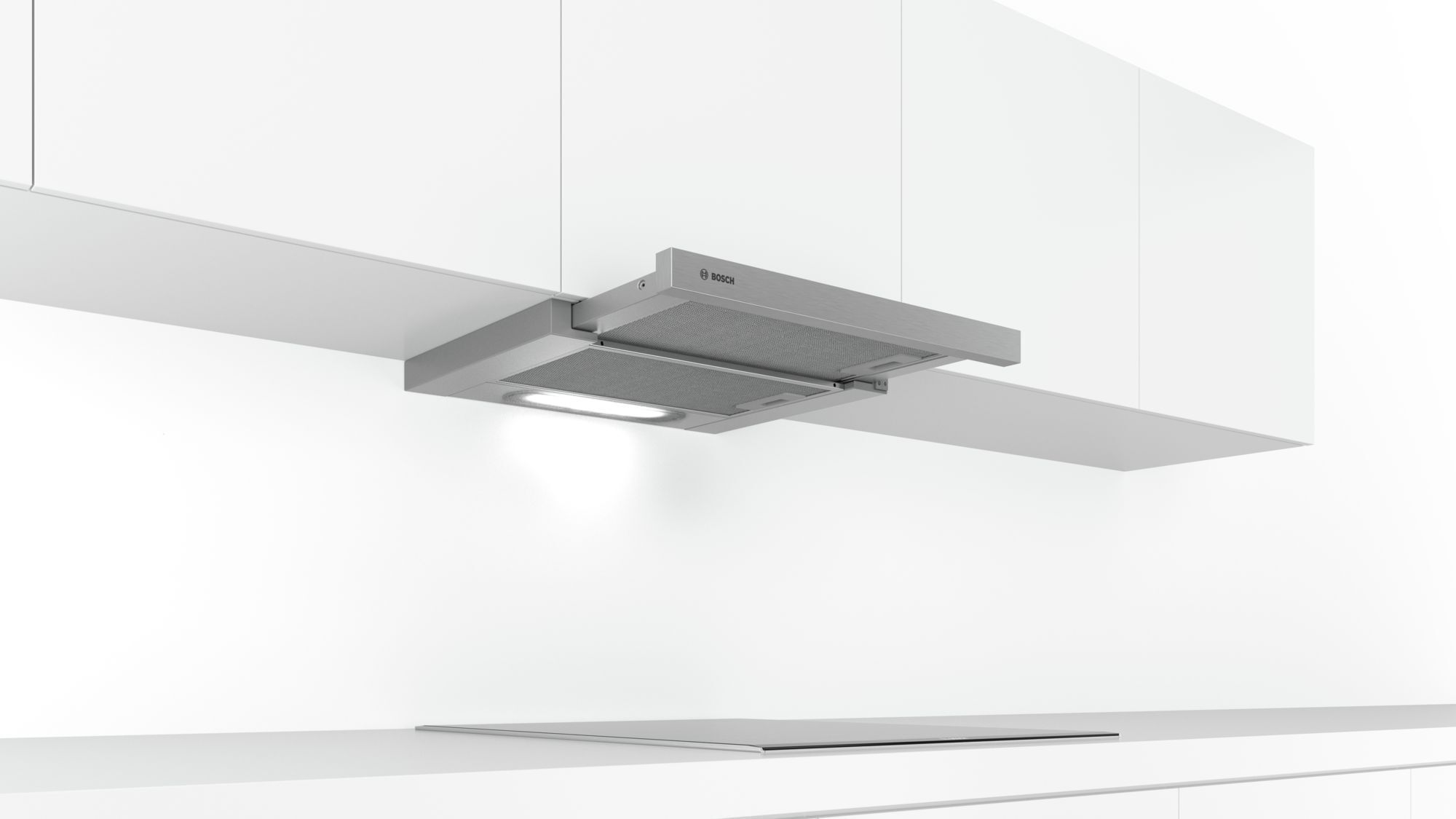 Bosch DFT63AC50 Serie 4 integreeritud õhupuhastaja on peaaegu nähtamatu ja elegantne valik moodsasse kööki.