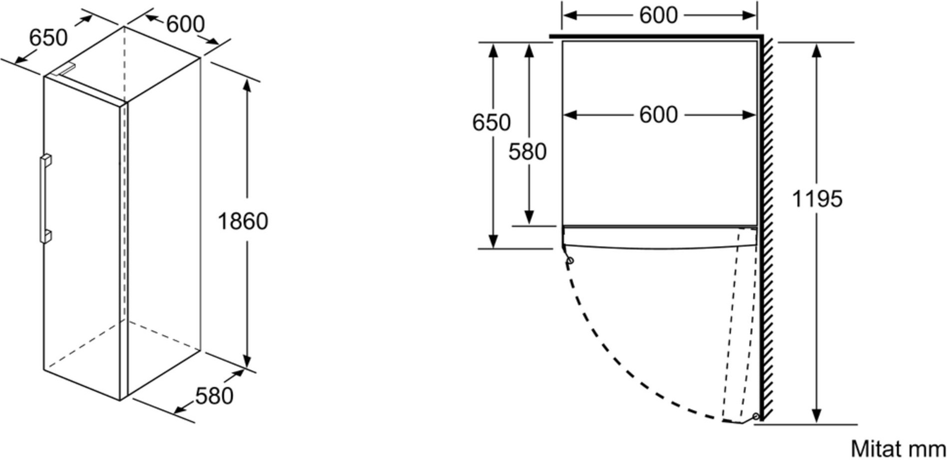 - Mõõtmed K x L x S (mm): 1760 x 600 x 650