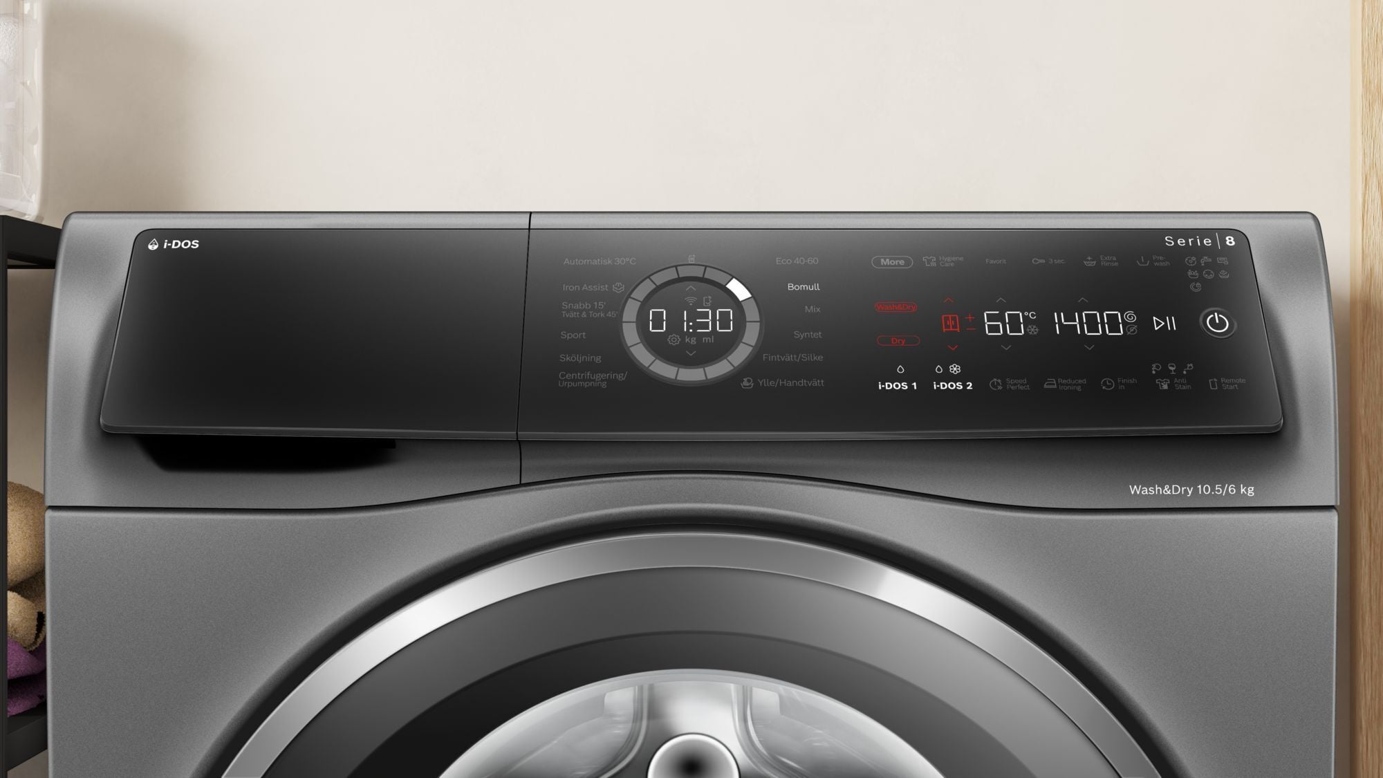 Pesumasin-kuivati i-DOS automaatse doseerimisega. Automaatne doseerimine, pesemine ja kuivatamine ühe puudutusega. Mõõtmed K x L x S (mm): 848 x 598 x 622