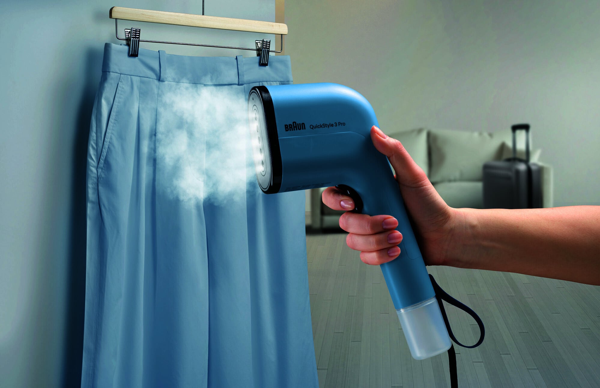 Kompaktne ja kerge rõivaauruti triigib ja värskendab riideid tõhusalt 1100 W võimsuse ja 22 g/min auruväljundiga. Seade kuumeneb kasutusvalmis vaid 30 sekundiga. Komplektis on hari, puhastusotsik ja kuumakindel kaitsekott.