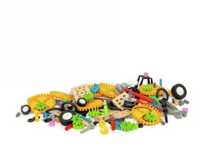 - Monipuolisesti työkaluja ja erilaisia rakennusosia