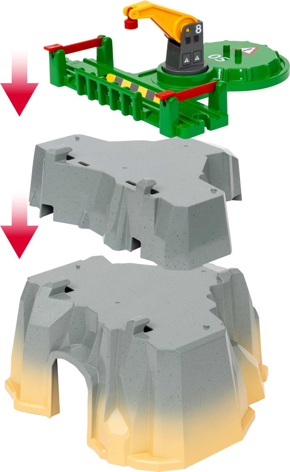 BRIO Railway 36010 mägede kaubarongikomplekt viib mängu äärmuslikesse kõrgustesse viie kraana- ja kaubarongifunktsiooniga – helikopteriplatvormilt mägedes sügavate tumedate koobasteni! Igal suurel mäeelemendil on kohandatavad mängufunktsioonid ja neid saab muuta, et luua avatud rongikomplekte erinevate kõrguste, välimuse ja funktsioonidega. Transportige ja jälgige seda ohtlikku ehitusplatsi usaldusväärsete masinatega, nagu helikopter, kaubarong ja vagunid ning veoauto. Realistlikud rongimänguasjad aitavad lastel lõbusal viisil oma keskkonda tundma õppida ja arendada peenmotoorikat.