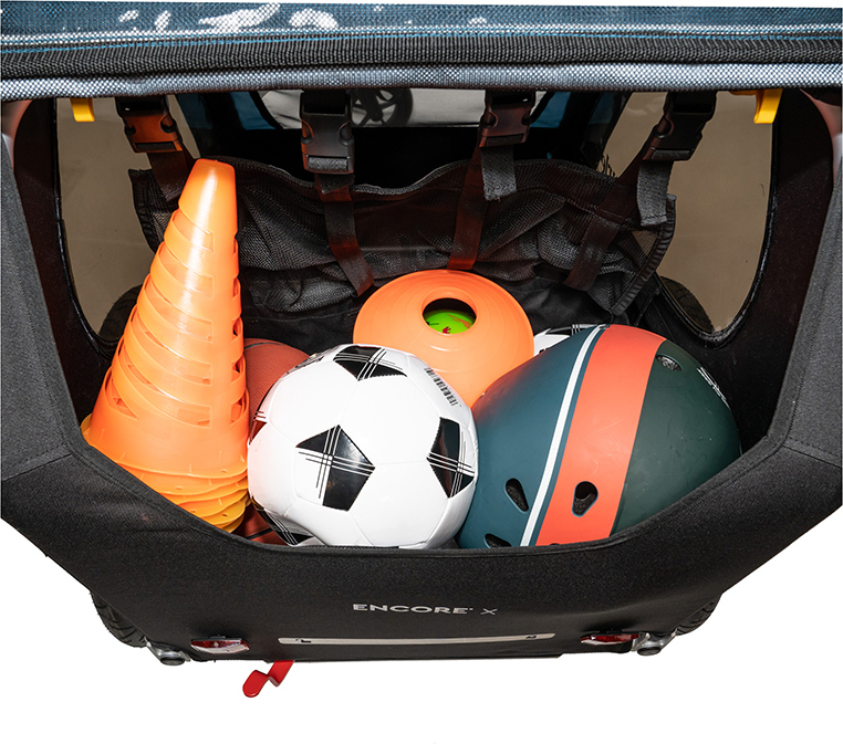 Burley Encore X on laadukas ja turvallinen polkupyörän peräkärry kahden lapsen kuljettamiseen. Kärry toimii myös työntökärrynä, takaosassa on tavaratila ja se on helposti taitettavissa pieneen tilaan kuljetusta tai varastointia varten. Pikakiinnitteiset 20″ renkaat rullaavat hyvin ja erillinen jousitus vaimentaa töyssyjä. Etuosan sadesuojan voi kauniilla säällä rullata pois, sillä sen alla oleva verkko estää hyönteisten ja kivien lentämisen kärryyn. Kärryn alumiinirunko on kevyt, mutta silti turvallinen myös mahdollisessa onnettomuustilanteessa. Tummennetut sivuikkunat suojaavat hyvin auringolta.