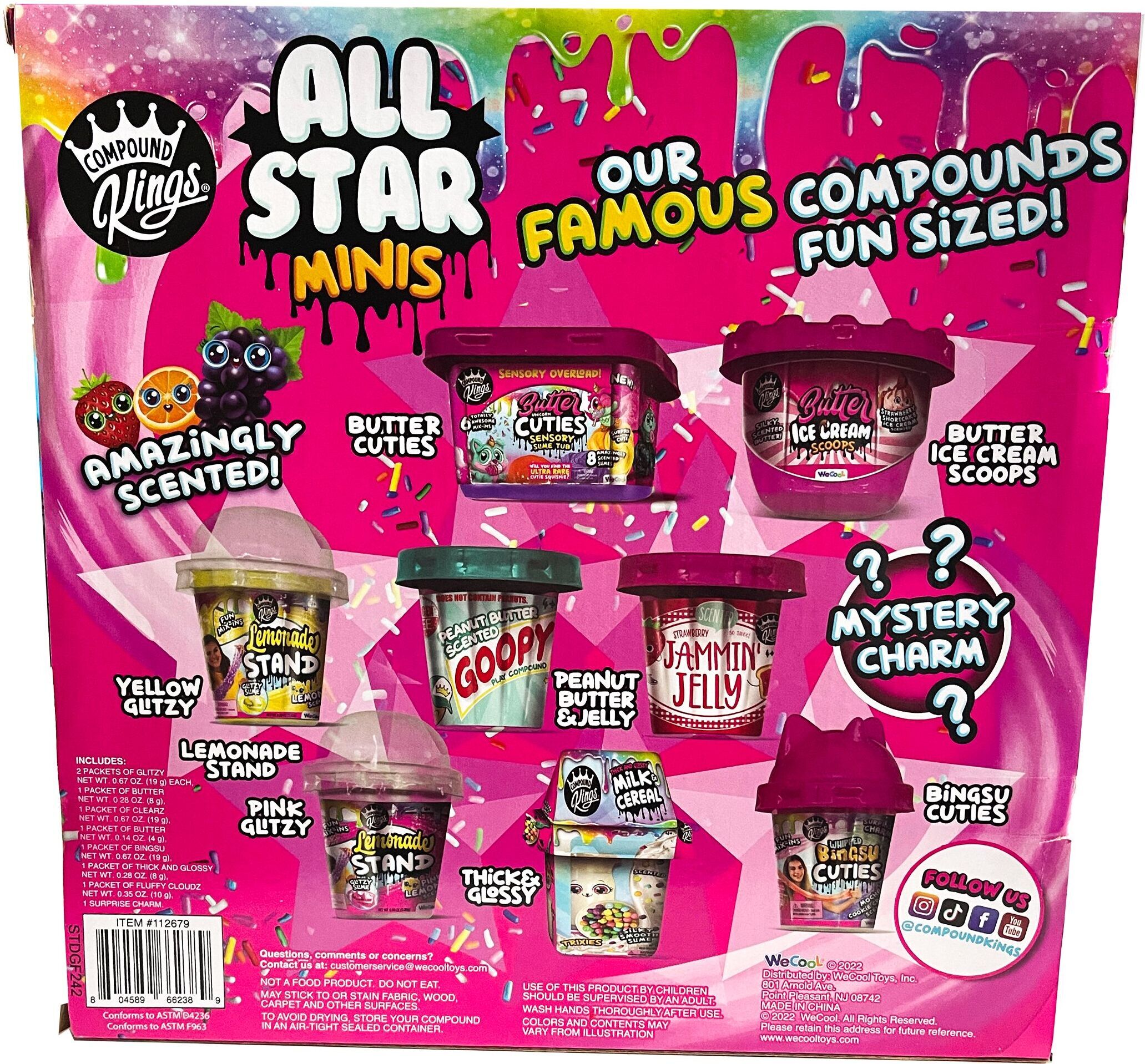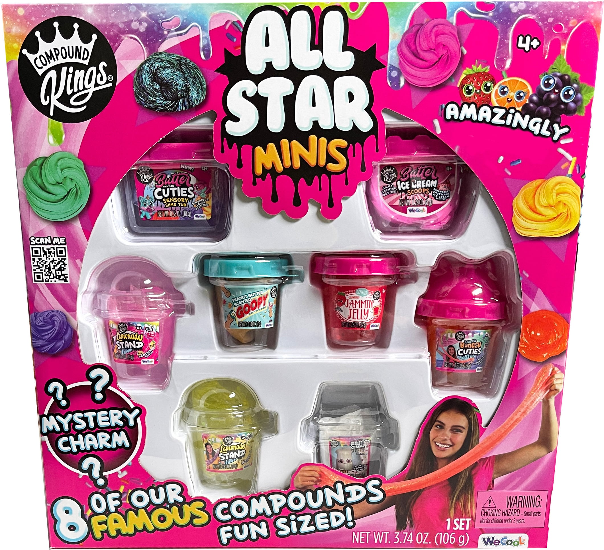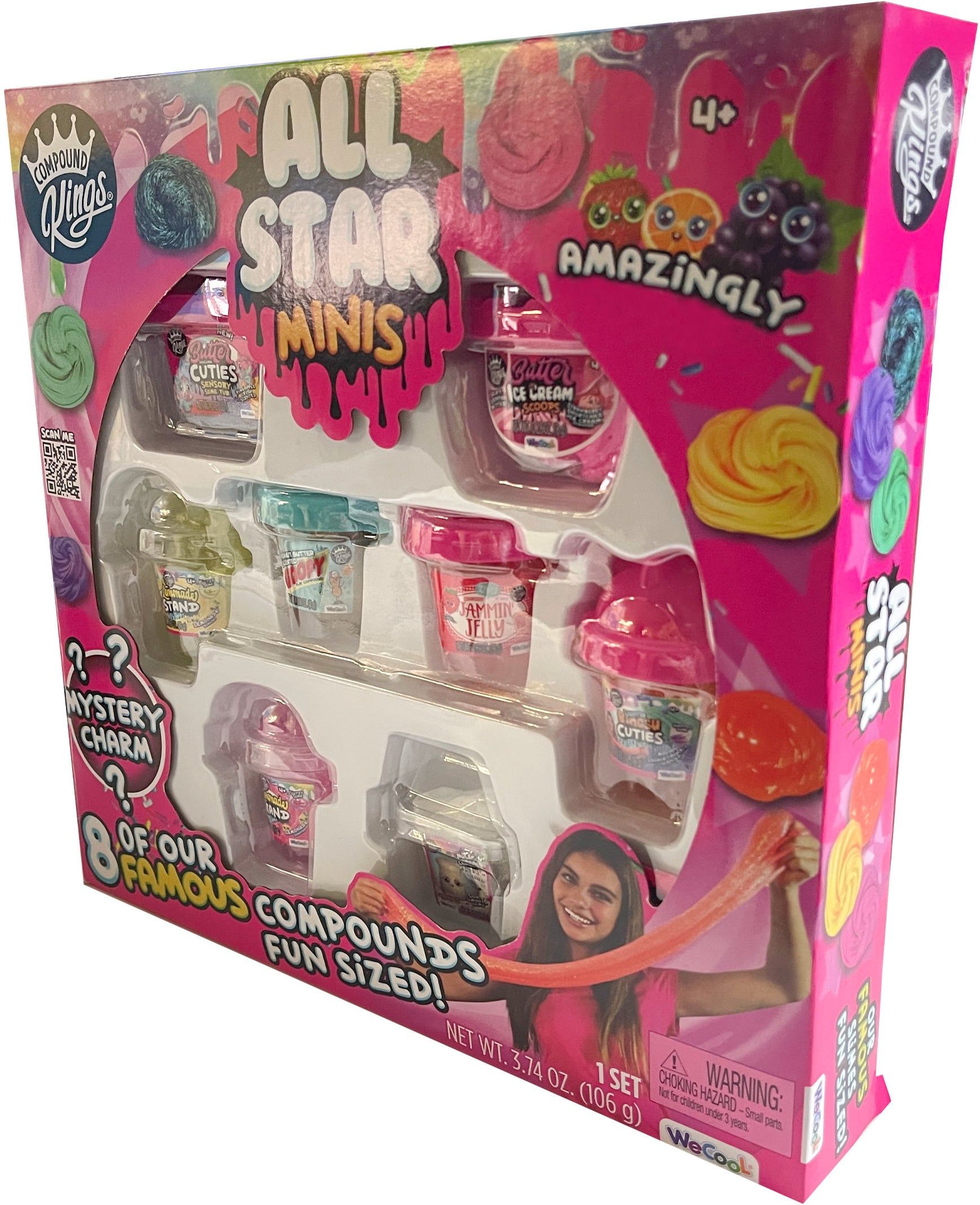 Pakk sisaldab kaheksat Compound Kingi kuulsaimat ja lõbusamat lima minipurkides. All Starsi minikomplektid on saadaval erinevates värvides ja tekstuuridega. Pakendis on ka salapärane amulett. 106 g All Star lima 8 tk pakis.