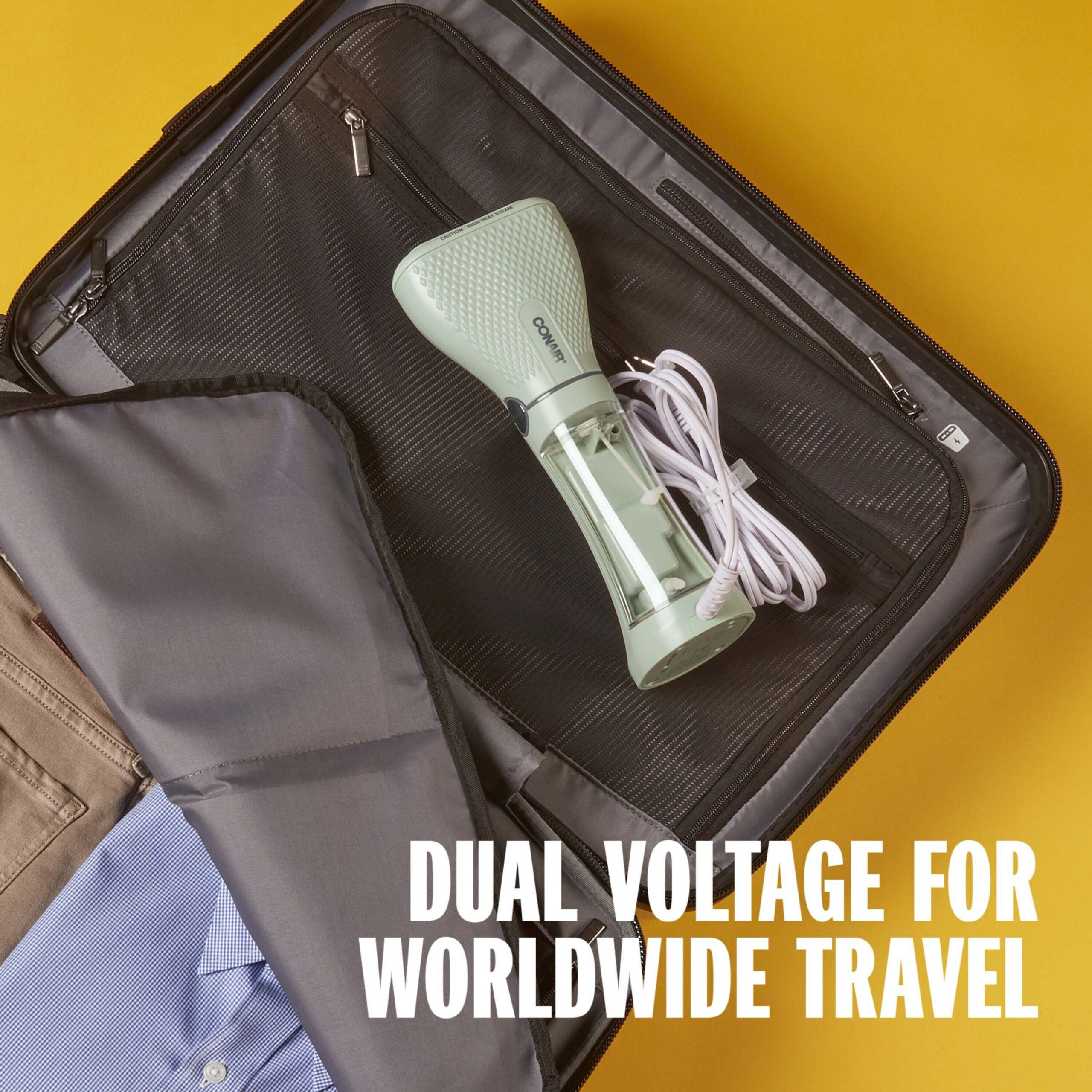 Conairi väike, kuid võimas kaasaskantav ExtremeSteam reisiriiete auruti on mugav kortsude silumiseks ja riiete värskendamiseks nii kodus kui ka liikvel olles. Kahekordne pinge võimaldab kasutamist üle maailma.