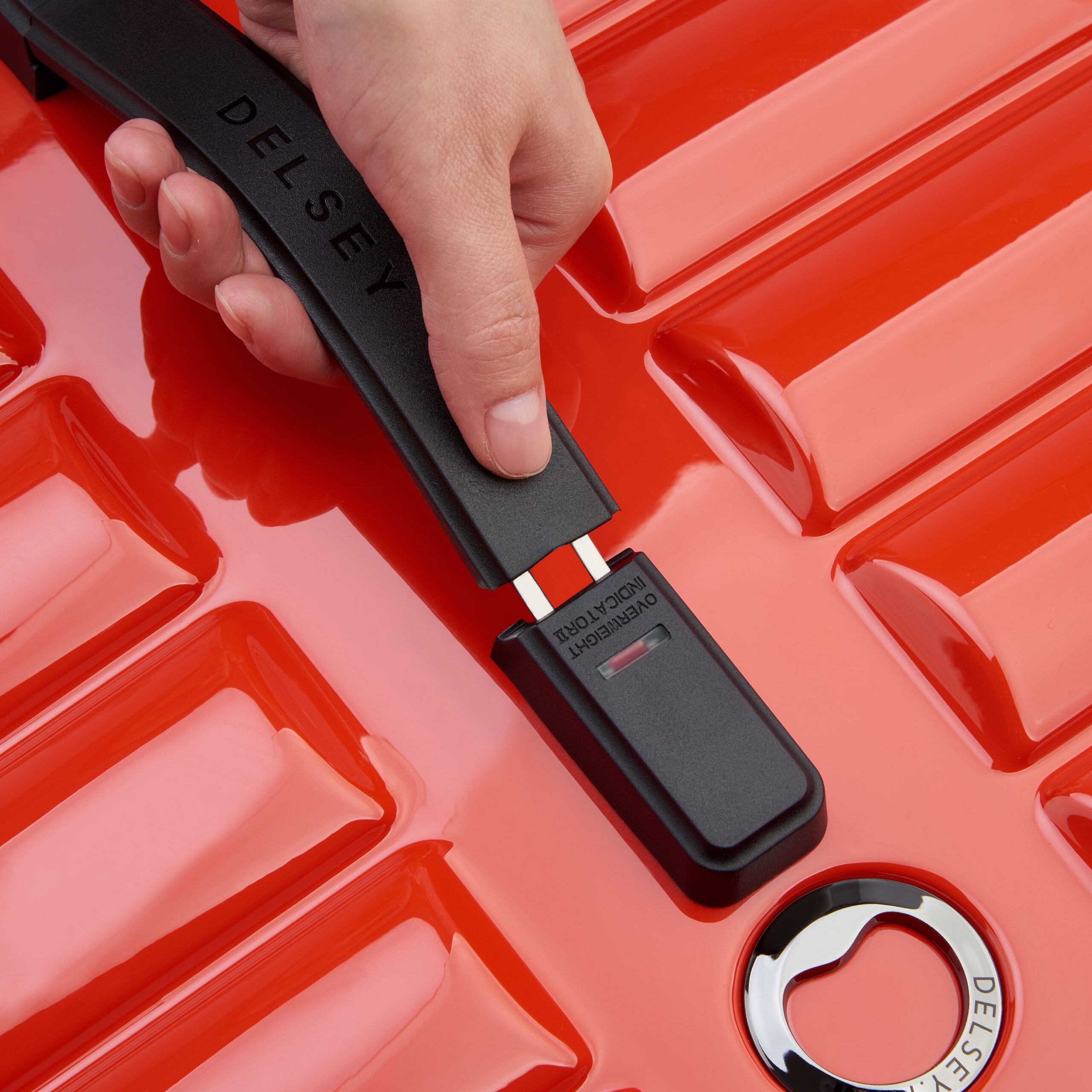 - Delsey patenteeritud ülekaalu indikaator on integreeritud koti külgkäepidemesse. See patareivaba funktsioon annab teile märku, kui teie kott saavutab oma maksimaalse kaalu, säästes teid registreerimisel lisatasudest.