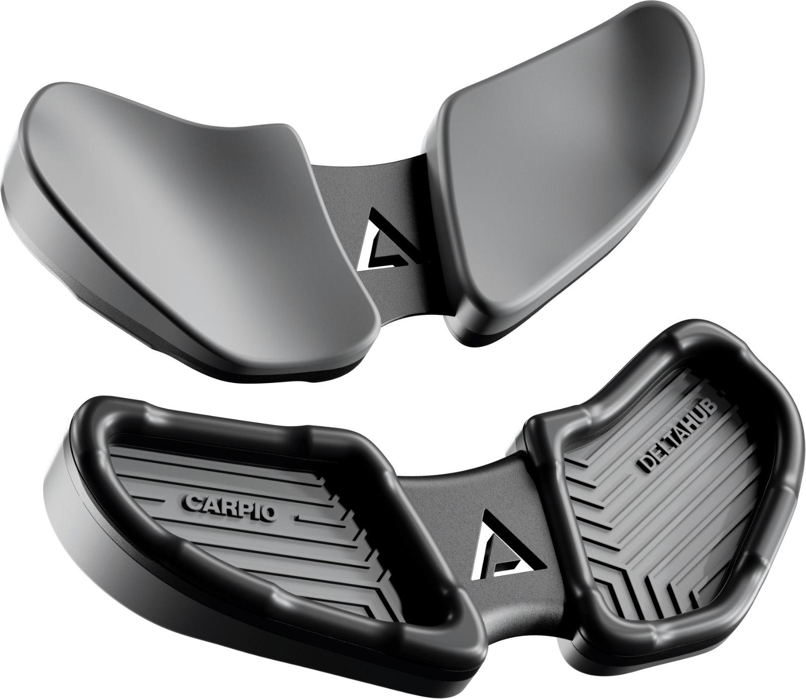 Deltahub Carpio 2.0 -rannetuki koostuu viidestä osasta: kahdesta muotoillusta silikonityynystä, ABS-pohjasta ja kahdesta PTFE-jalasta. Pehmusteiden ergonominen muoto saavutettiin useiden käsimuottien 3D-skannauksella ja jatkojalostuksilla lääkäreiden avulla. Silikonityynyt tarjoavat täydellisen tasapainon mukavuuden ja vakauden välillä. Mitä tulee liikkeeseen, kaksi PTFE-jalkaa eivät rajoita ranteen liikettä, vaan pikemminkin mahdollistavat Carpion liukumisen yhdessä käden kanssa ja antavat käsivartesi liikkua luonnollisesti. Carpio tarjoaa ratkaisun ranteeseesi pitkiä tunteja tietokoneen takana.