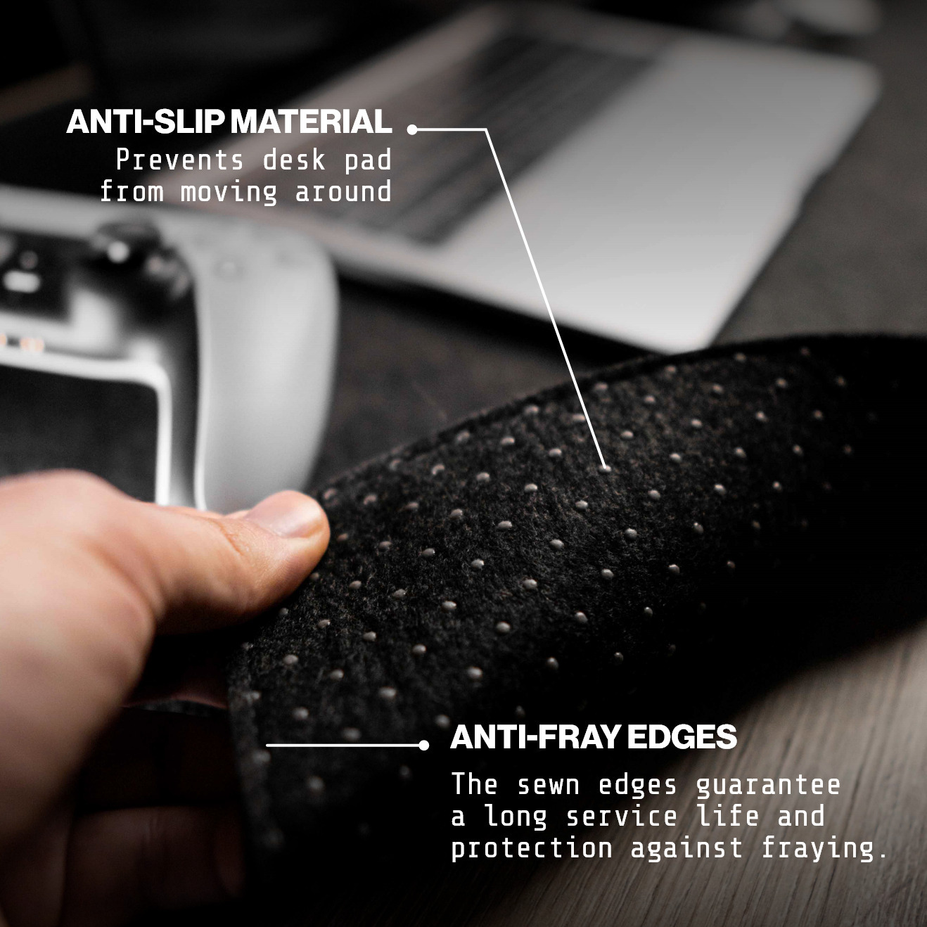 Premium Design – Deltahub Felt Desk Mat tarjoaa vain korkealaatuista materiaalia ja huolellisia ompeleita, joten se tarjoaa korkealaatuisen kokemuksen kannettavaa tai tietokonetta käytettäessä.