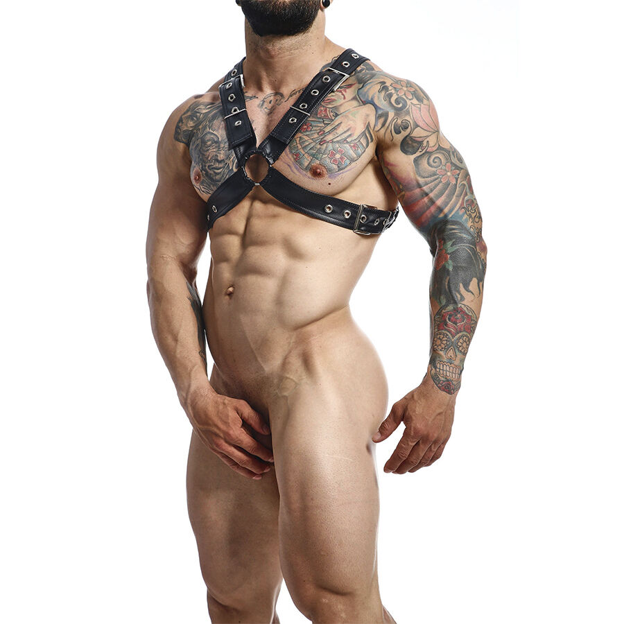 Indulge in the seductive allure of the Dngeon Classic Cross Harness, an impeccable fusion of style and substance. Meticulously crafted in plush faux leather, this harness stands out as an epitome of masculine elegance. Each stitch, a narrative of dedication, handcrafted by the resilient women of Colombia, who anchor their families with strength and pride. This piece not only promises to accentuate the wearer's physique but also resonates with a deep sense of ethical responsibility. Canadian design expertise gives it a cutting-edge finish, ensuring you make a bold statement each time you don it. What sets it further apart is its sustainable production, woven together with renewable energy sources, making it as kind to the environment as it is tantalizing to the eye. Whether it's for an intimate evening or a daring night out, the CLASSIC CROSS HARNESS promises an unforgettable impression.