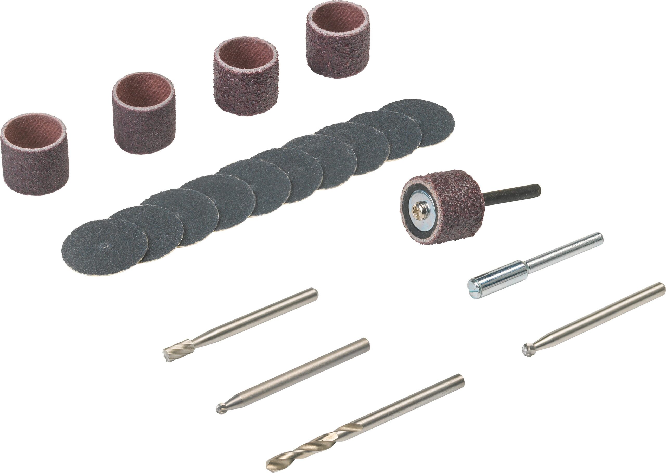 20-osainen puuntyöstösarja (681) sisältää valikoiman tärkeitä puuntyöstössä tarvittavia tarvikkeita. Tarvikkeilla kaiverrat, hiot sekä poraat puumateriaaleja.