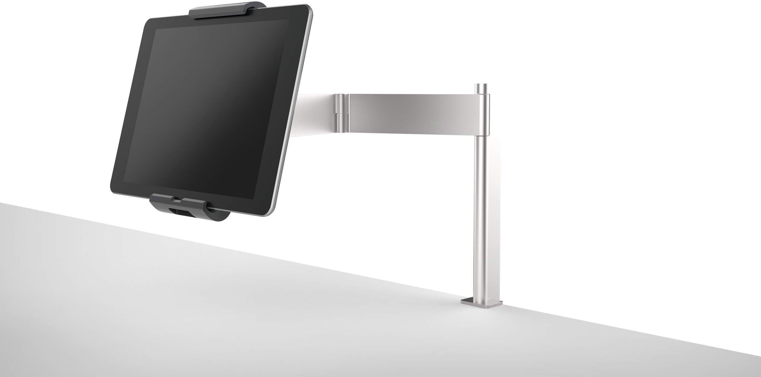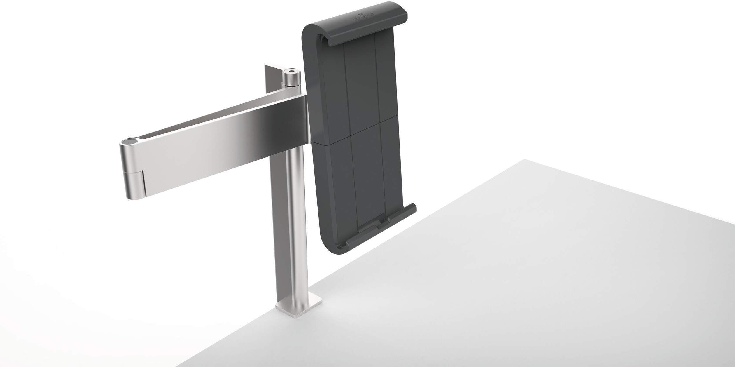 ABS-muovista ja alumiinista valmistetu tablettiteline on kätevä ja mahdollistaa eronomisen työskentelyn, koska tabletin asentoa voi muuttaa yksilöllisesti. Voidaan kiinnittää aina 40 mm paksuisiin pöytälevyihin, tabletti saadaan lukittua telineeseen varkauksien estämiseksi.