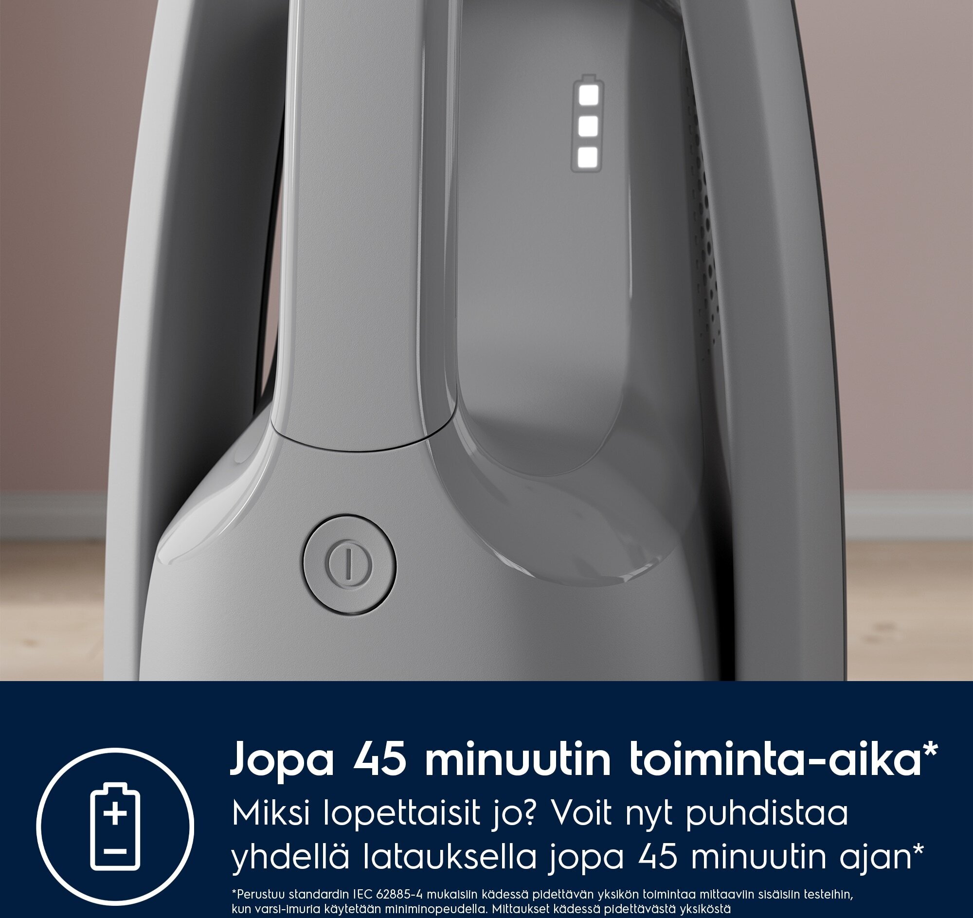 Tolmuimejaga oma kodu ühe laadimisega. Kuni 45 minutit pidevat kasutamist täis akuga, nautige katkematut tolmuimemist