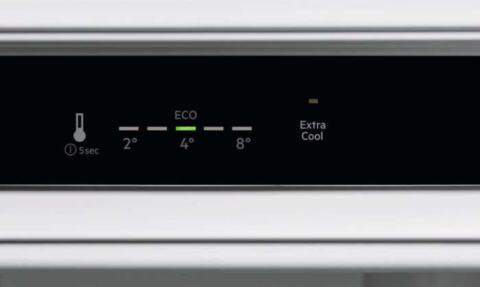 Ülemisel asuv elektrooniline puuteekraan pakub kiiret juurdepääsu külmiku erinevatele funktsioonidele ja temperatuuri reguleerimisele. Ekraan on paigutatud siseküljele, mis kaitseb seda kahjustuste eest ja hoiab kasutajaliidese puhtana.