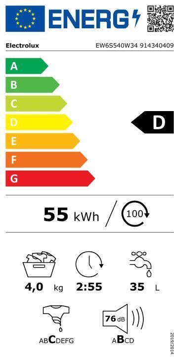 • Energiankulutus: 55 kWh / 100 pesua