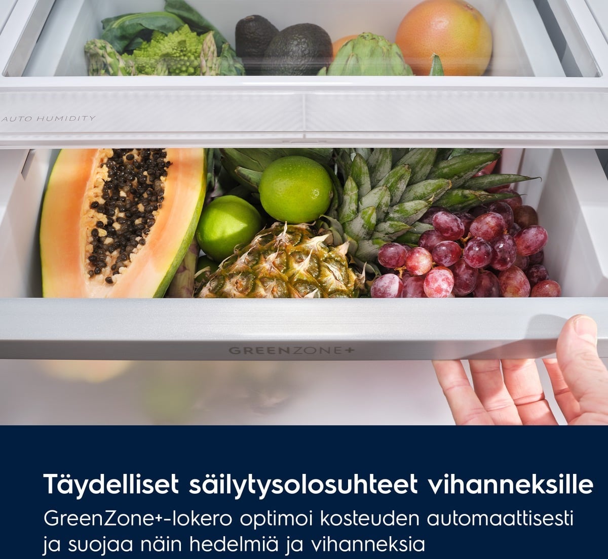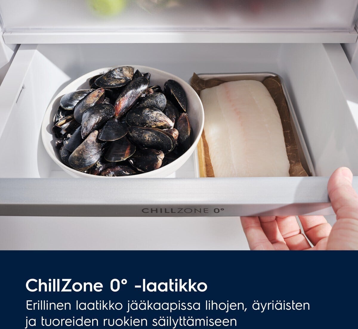 Electrolux LNT8MB36B külmik-sügavkülmik on kaasaegne ja energiasäästlik seade, millel on jahutussüsteem Cooling 360°, mis tagab ühtlase jahutuse. Sellel on eraldi hoiukambrid delikatesside ja köögiviljade jaoks, TwinTech® NoFrost sügavkülmikusüsteem ja nutikate rakenduste tugi. Mõõtmed K x L x S (mm): 2020x595x664