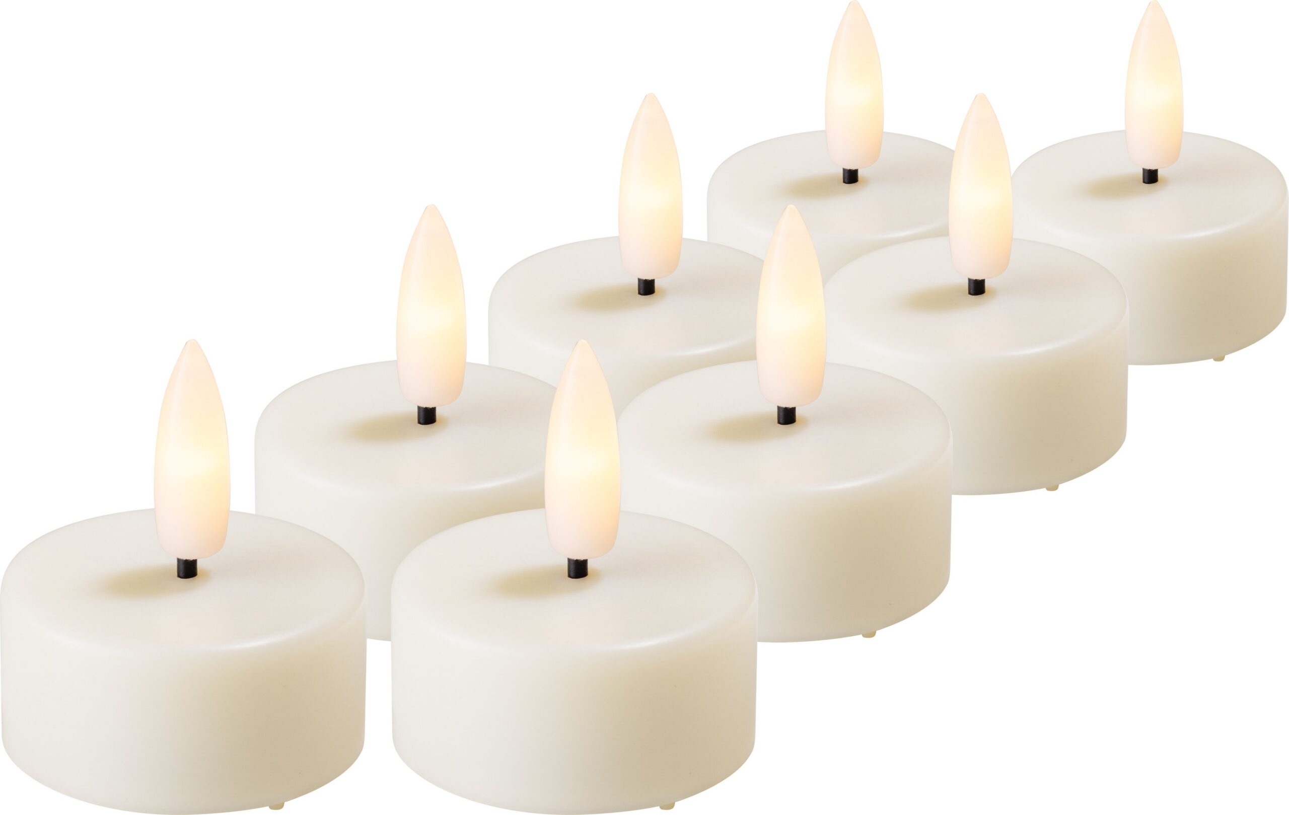 Enne sädelevad LED-küünlad meenutavad päris küünlaid ja nende leegil on elav 3D-efekt, mis paneb valguse kaunilt vilkuma. Pakend sisaldab kaheksat patareidega töötavat teeküünlaküünalt.