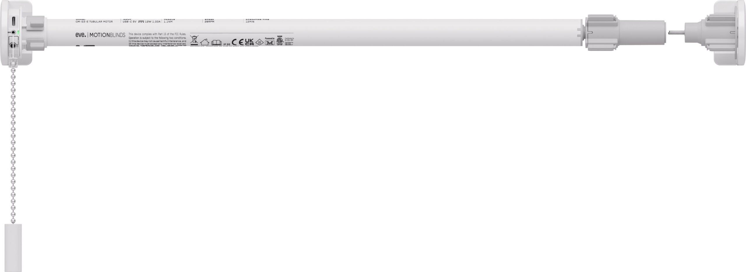 Eve MotionBlinds täienduskomplekt, Matter kardinakontroller, täienduskomplekt. Täienda oma olemasolevaid ruloosid Eve MotionBlinds täienduskomplektiga ja naudi nutika varjutamise mugavust.