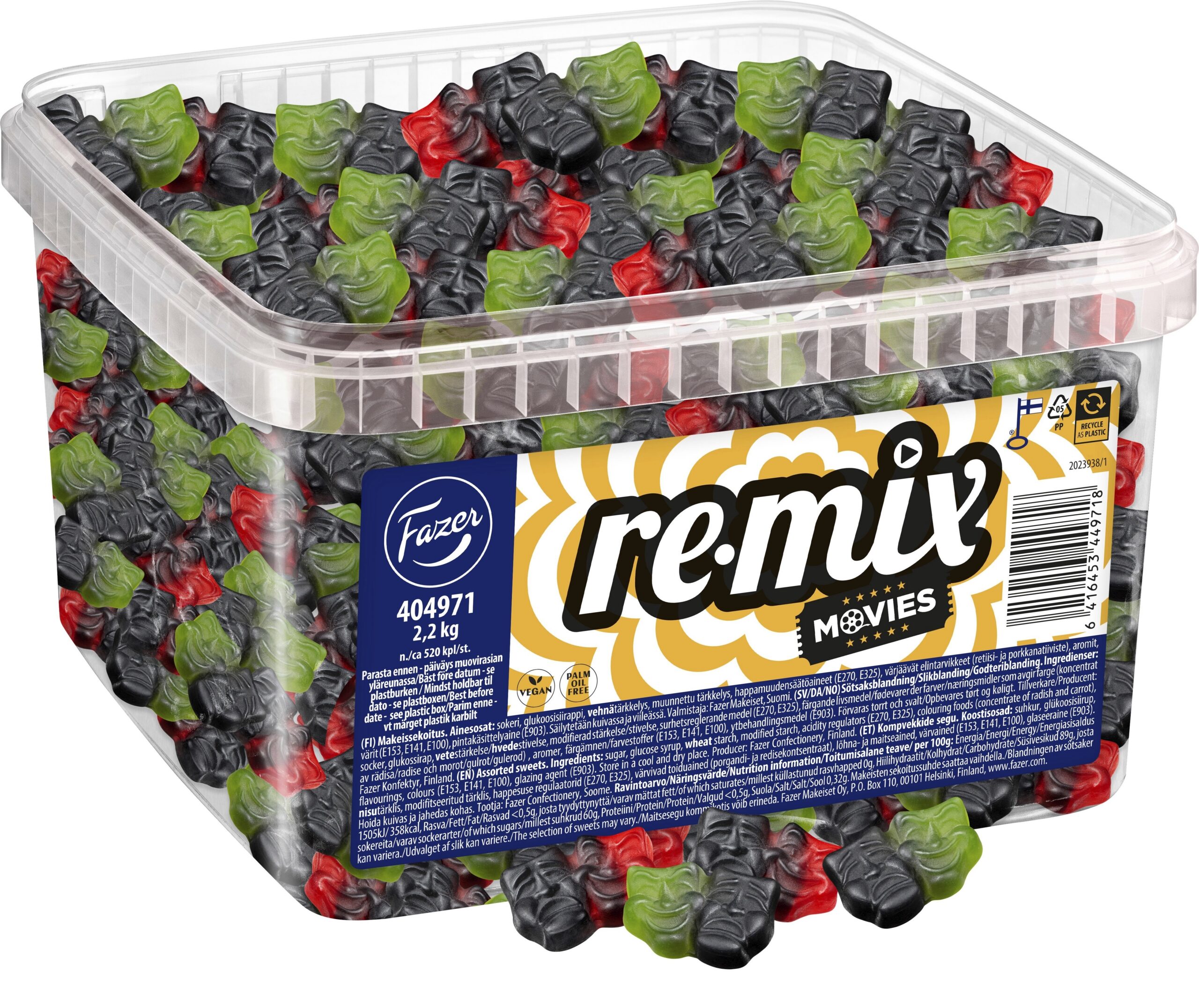Remix Movies kroonib filmiõhtud maitsva maitsete seguga. Kas maitsete täna õhtul draamat, komöödiat või äkki mõlemat? Kahevärvilistes Movies maskides on värske õun ja maasikas ühendatud soolase aniisi maitsega. Haarake kommid kaenla alla, lülitage sisse oma lemmikfilm või -sari ja nautige!