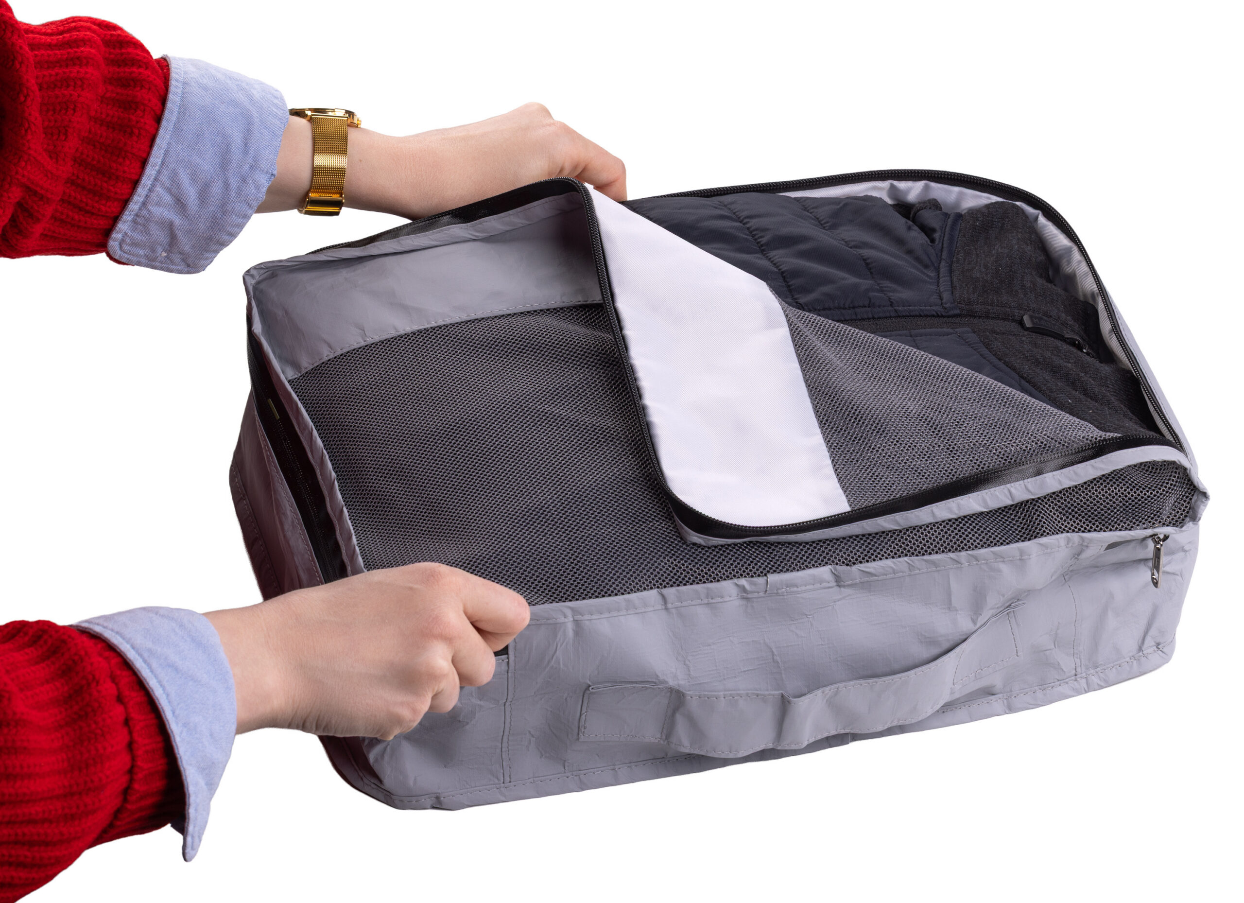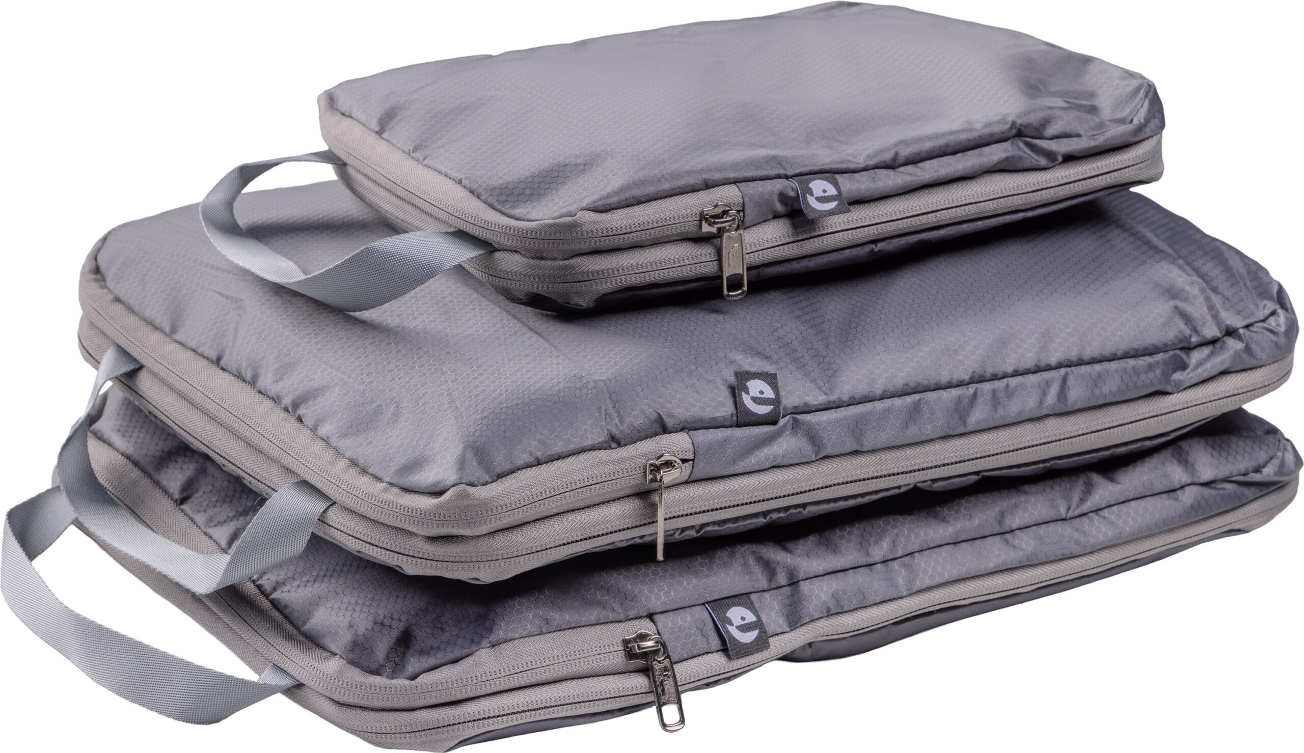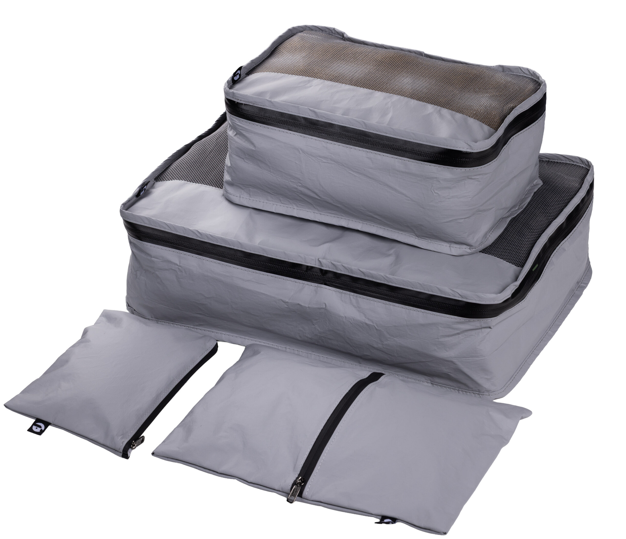 Omadused: vastupidav õmblus, hingav võrkkangas – kergesti tuvastatav ja parem ventilatsioon, 6 tk komplekt, suurus L: 40,5 x 29 x 4,5 cm, suurus M (kaks pakkimiskuubikut): 36,5 x 26,5 x 3,8 cm, suurus S: 26,5 x 19,3 x 3,8 cm