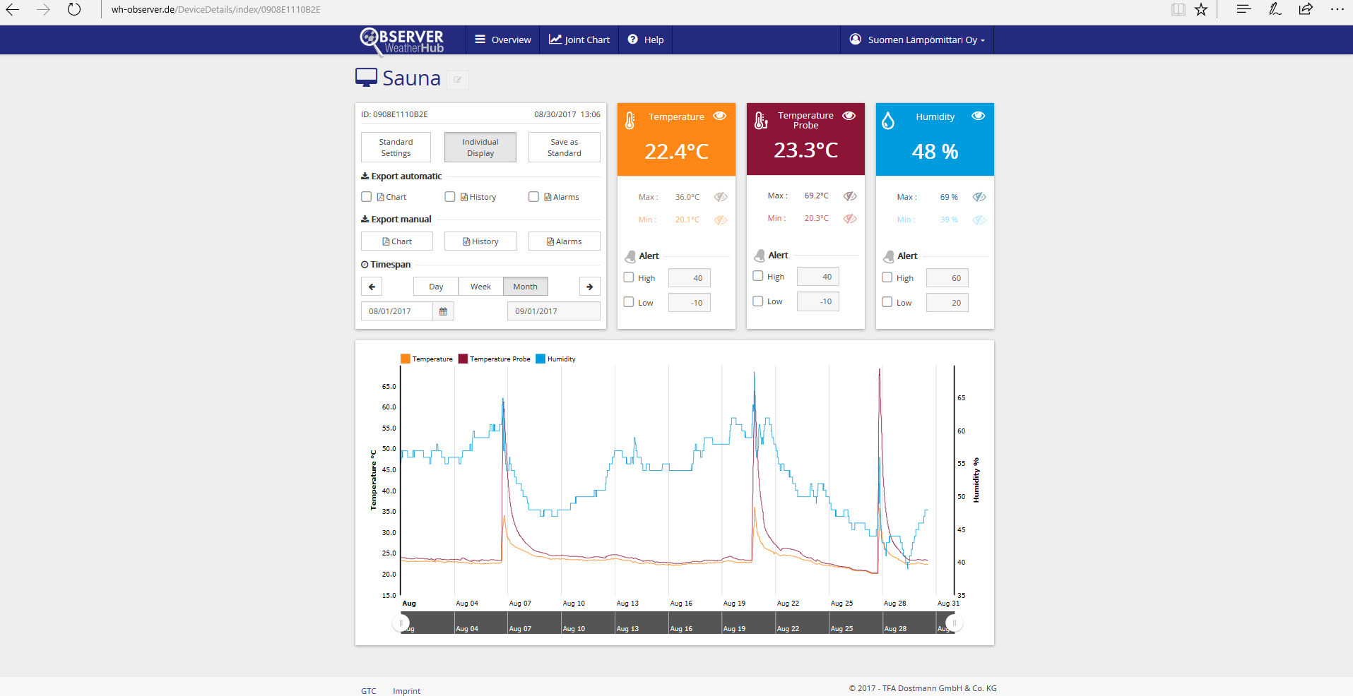 Finnish Thermometer 8215 Pro WeatherHub juhtmevaba saatja juhtmega anduriga