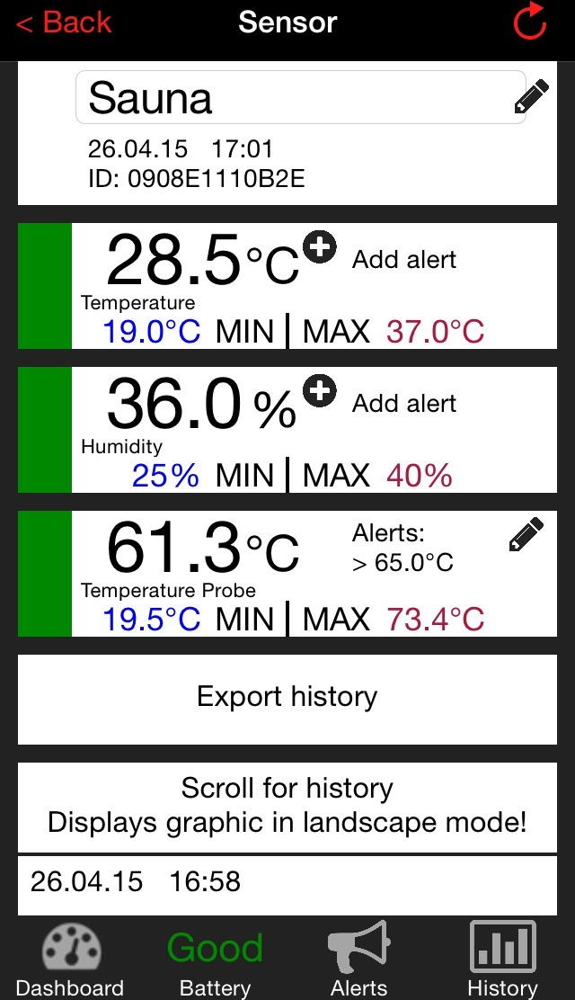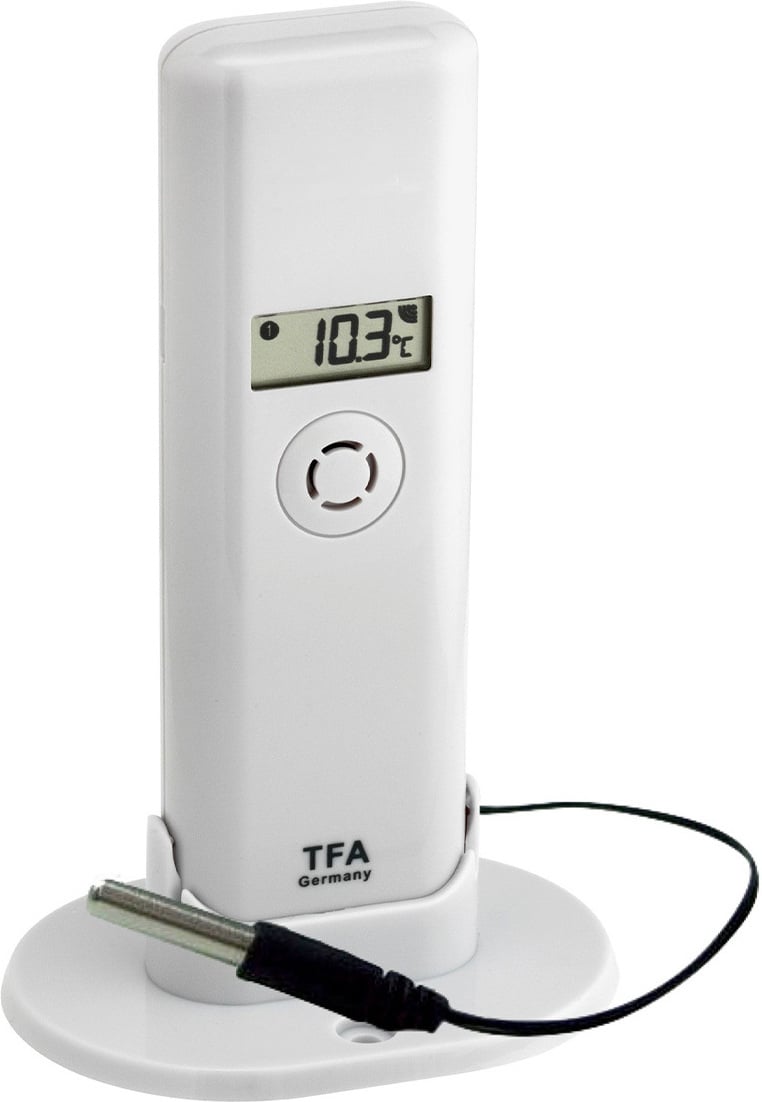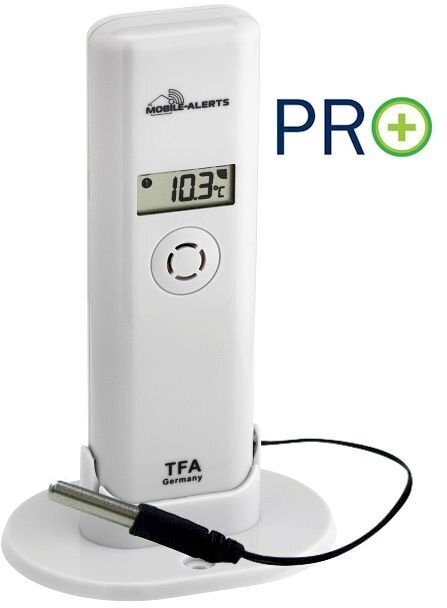 WeatherHub Pro saatja traatanduriga, mis mõõdab temperatuuri kuni +110 °C, nii et saate seda kasutada ka sauna temperatuuri mõõtmiseks.