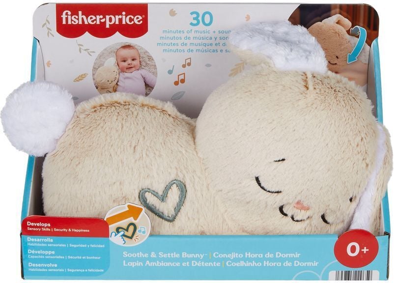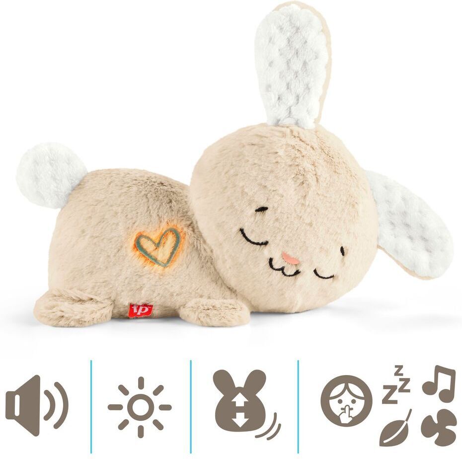 Rahulikult hingav ja nurruv jänkuplüüs aitab teie pisikesel uinuda. Jänes liigub rahulikult ja kiirgab õrna valgust. Mänguasja saab seadistada mängima rahulikku muusikat või helisid. Sisaldab 3 x AA patareid.