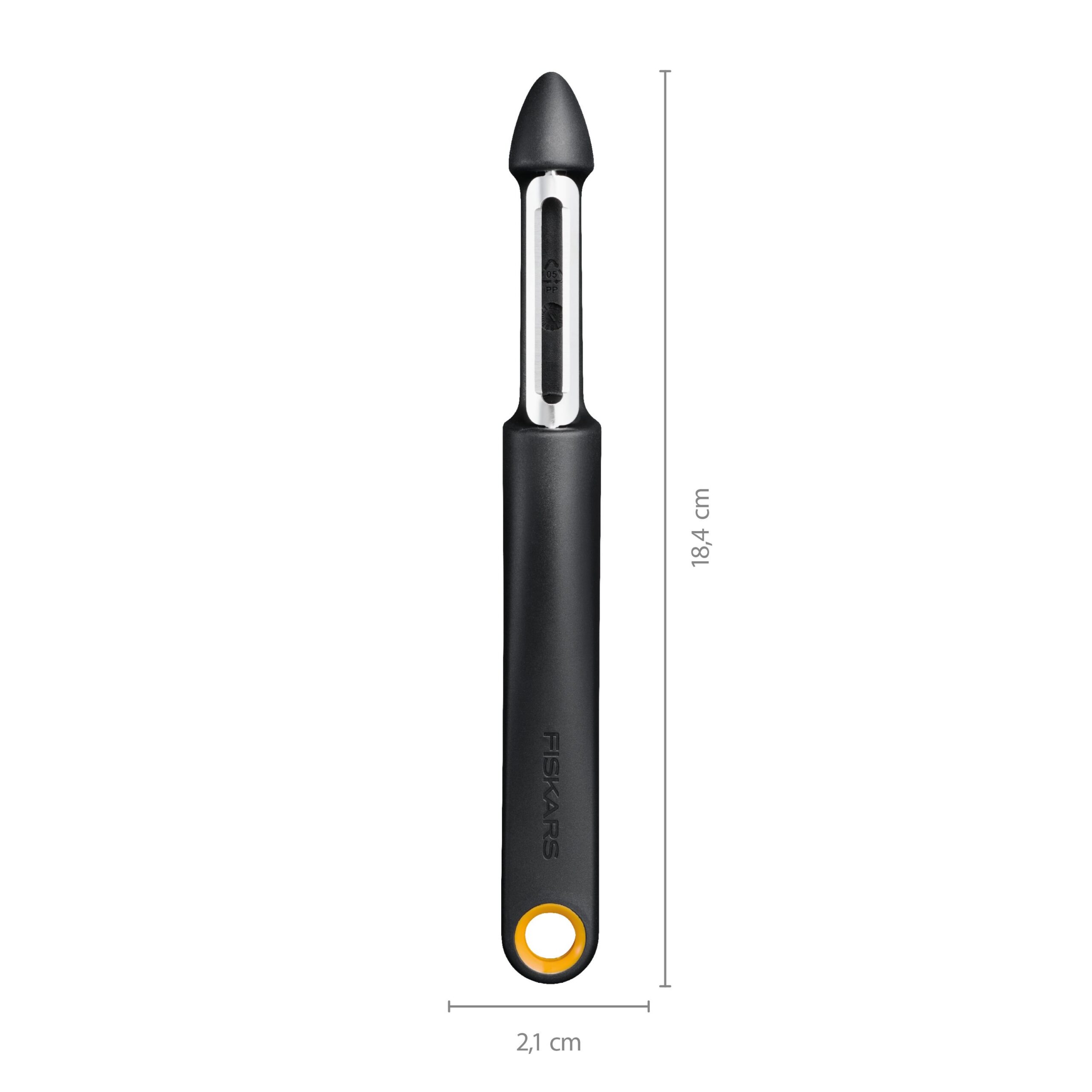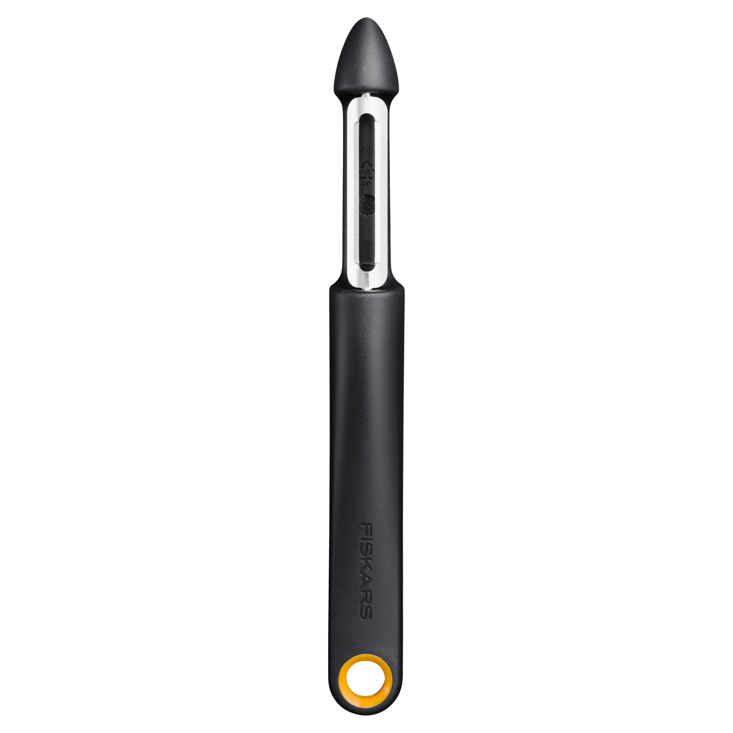 Pöörleva teraga koorija järgib täpselt puu- ja köögivilja kuju, muutes koorimise lihtsaks ja tõhusaks. Ergonoomiline käepide sobib igas suuruses kätele ning koorijat saab pesta nõudepesumasinas ja seda on lihtne hoiustada.