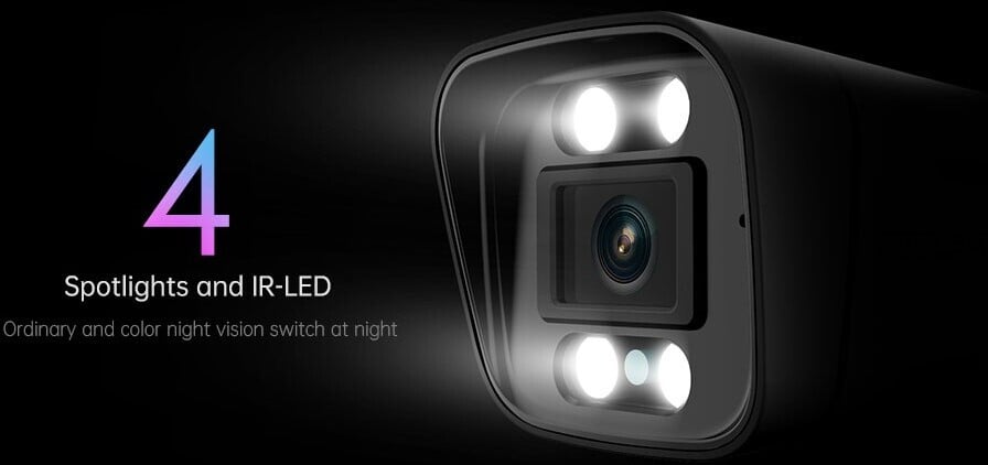 • Värviline öönägemine, 4 prožektorit (4500K) ja IR-LED-id