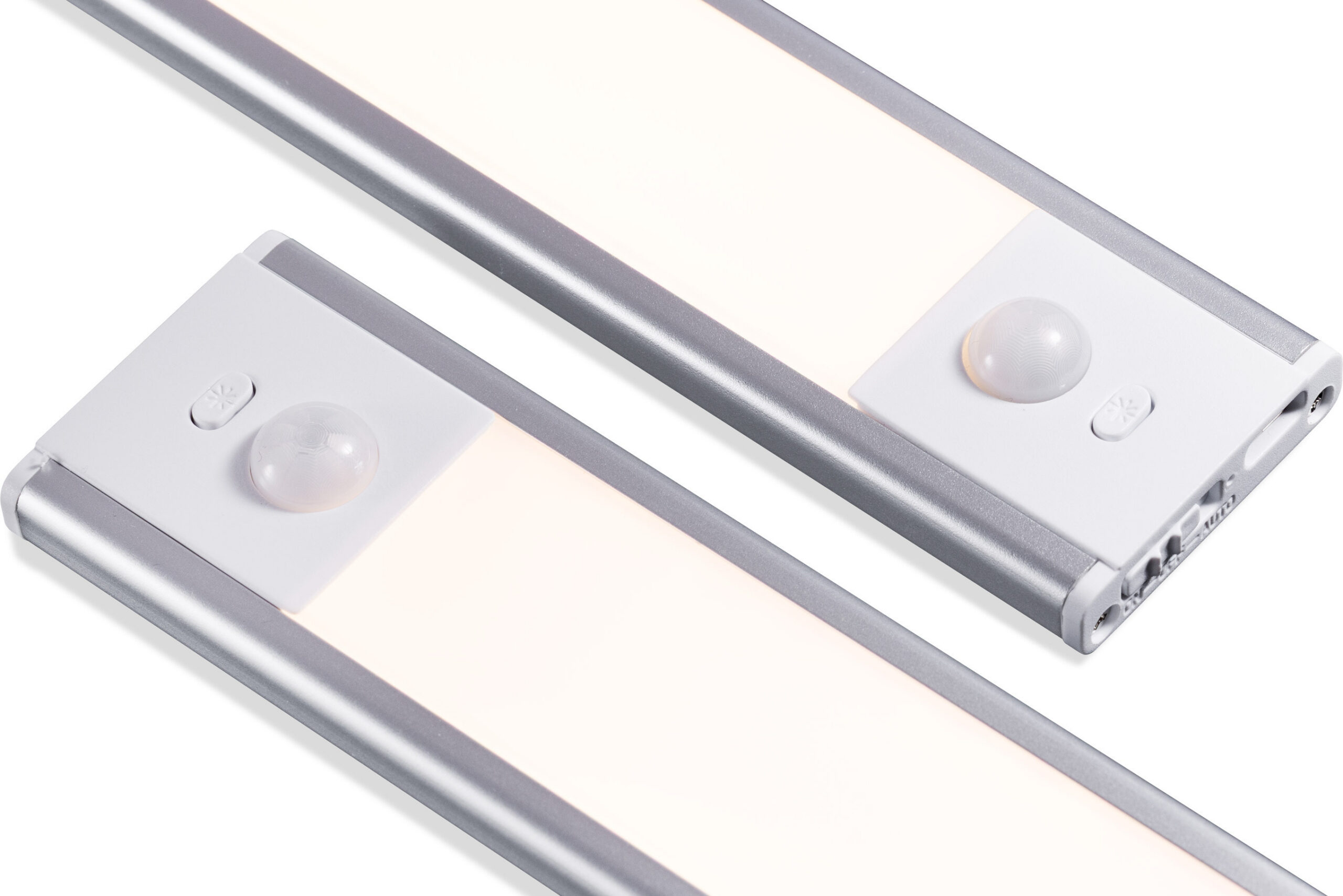 Kvaliteetne ja kerge Fuj:tech valgustuskomplekt pakub valgustusvõimalusi just seal, kus neid kõige rohkem vajatakse. Lampide kompaktne suurus ja õhuke, elegantne disain teevad neist ideaalse valiku kappide, riiulite või muude kitsaste kohtade valgustamiseks. Seda lampi saab paigaldada peaaegu kõikjale, nii horisontaalselt kui ka vertikaalselt. Tänu mugavale magnetilisele kinnitusele on seda lihtne paigaldada ja kruvideta kinnitada. Soovi korral saate lambi kronsteinilt eemaldada ja seda kaasaskantava valgustina kasutada. Selle väiksus muudab selle sobivaks väga erinevatesse kohtadesse, avades uusi võimalusi prožektorite paigaldamiseks. Mõlemal kapivalgustil on reguleeritavad värvitemperatuurid (3000 K, 4000 K ja 6000 K), nii et saate vastavalt oma vajadustele valida sooja, neutraalse või jaheda valguse. Astmevaba hämardamine (100% – 5%) võimaldab valgustust iga olukorra järgi reguleerida. Lambil on ka mugav liikumisandur, mis võimaldab sellel automaatselt sisse lülituda, kui keegi läheduses liigub või kapiuks avatakse. Lambil on ka ON-OFF-AUTO lüliti, nii et saate valida, kas soovite, et tuli lülituks sisse automaatselt või käsitsi. Liikumisanduri aktiveerimisel lülitub lamp energia säästmiseks automaatselt välja.