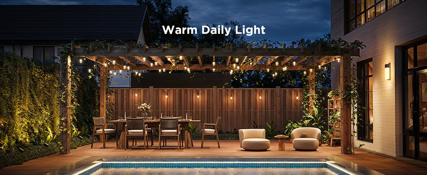 Tänu RGBIC-tehnoloogiale pakub valgustite seeria 16 miljonit värvitooni ja 100 eelseadistatud valgustusrežiimi, mida saab kasutada erinevate meeleolude loomiseks. Soe valge valgus (kokku 1200 lm) sobib suurepäraselt lõõgastavateks hetkedeks, samas kui värvilised tuled toovad elu pidudele või on dekoratsiooniks.