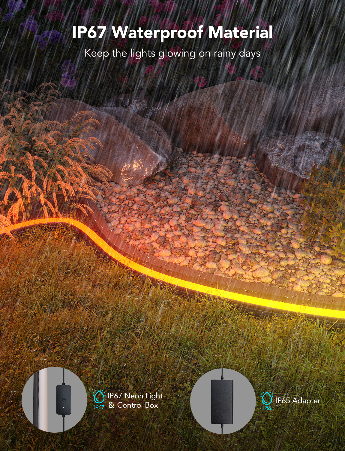 Govee RGBIC Outdoor Neon Strip Lights on 10 meetri pikkune, reguleeritav ja hõlpsasti paigaldatav valgusriba, mis sobib nii sise- kui ka välistingimustes kasutamiseks. Selle silikoonkate kaitseb niiskuse ja tolmu eest ning toetab nutikat juhtimist Govee Home rakenduse ja häälkäskluste abil.