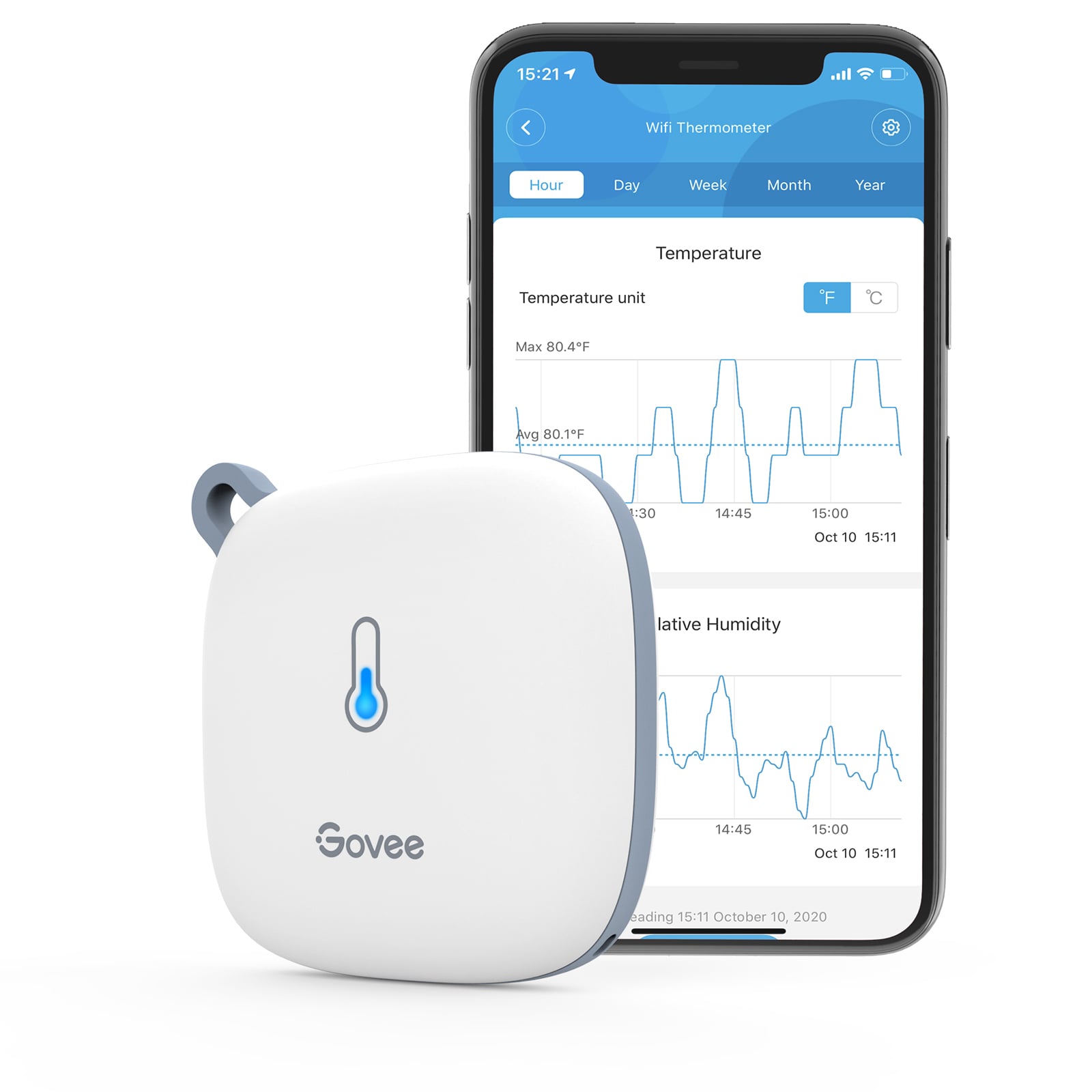 Govee WiFi Thermometer Hygrometer on langaton laite, joka mittaa tarkasti sekä lämpötilan että ilmankosteuden. Sen avulla voit seurata sisäilman olosuhteita esimerkiksi kasviterrarion, viinikellarin, inkubaattorin tai makuuhuoneen ympäristössä. Laite yhdistyy Bluetoothin tai WiFi:n kautta älypuhelimeesi, jolloin saat reaaliaikaiset tiedot ja hälytykset suoraan Govee-sovellukseen.