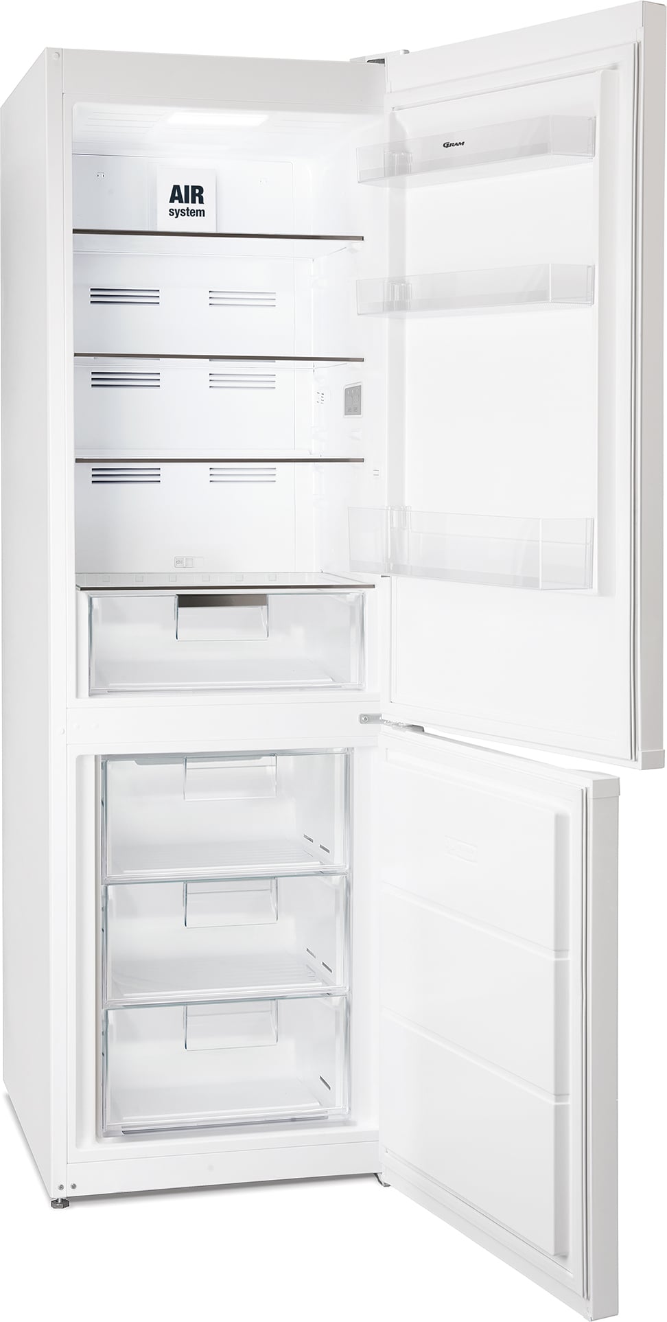Gram valkoinen jääkaappipakastin NoFrost-toiminnolla sekä DualCooling-ilmankierrolla. Mitat K x L x S (mm): 1860 x 595 x 600