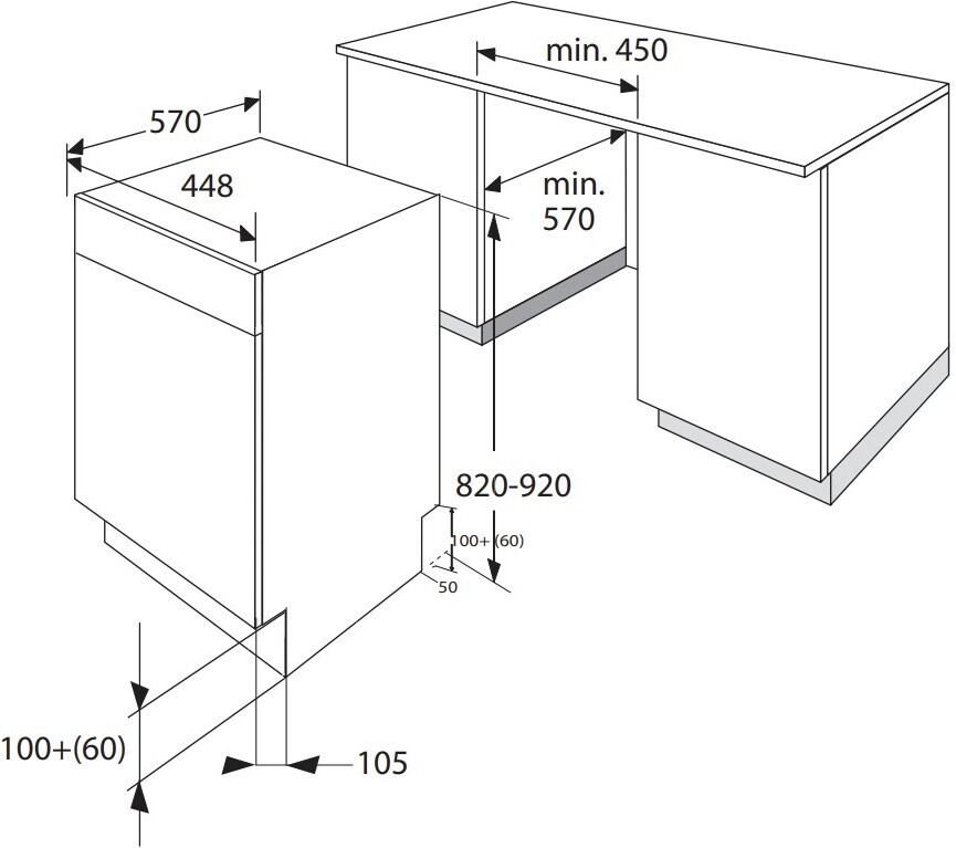 Grami kitsas nõudepesumasin kolmanda tasemega söögiriistade jaoks, nii et sul on masinas rohkem ruumi taldrikute ja muude nõude jaoks. Mõõtmed K x L x S (mm): 820-920 x 450 x 570
