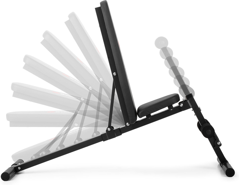 Selja-, kõhu- ja kaldpink mitmekülgseks treeninguks kompaktses suuruses. See on kontoritöötaja pääste, kui soovite tagada oma selja tugevuse pideva istumise ja liikumatuse ajal. Seljatuge saab reguleerida 7 erinevasse asendisse olenevalt harjutusest. Jalatugi toimib jalgade toena kõhulihaste harjutuste ajal, aga tänu reguleeritavusele ka nimmetoena seljaharjutuste ajal. Pink on kokkupandav, seega võtab see hoiustamisel vähe ruumi ja saate seda kiireks treeninguks lähedal hoida, kuid siiski peita, kui te seda ei kasuta.
