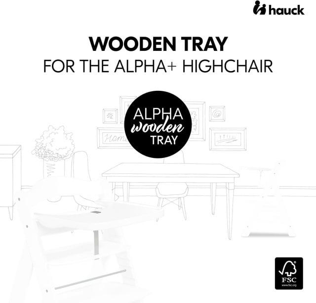 Hauck Alpha puidust kandiku saate hõlpsasti lisada Hauck Alpha söögitoolile. Teie laps saab süüa ja hoida kandikul väikseid esemeid.