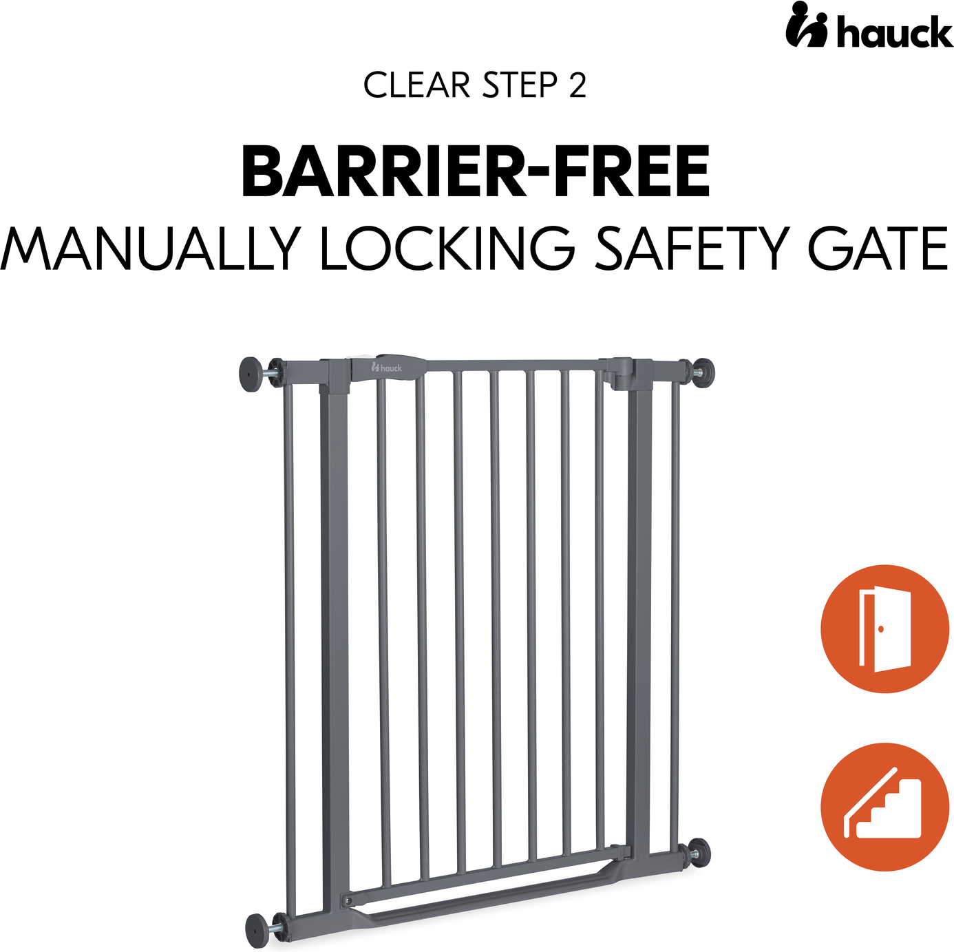 Lastega peredele pakub turvalisust Hauck Clear Step 2 turvavärav. Peaaegu lävepakuvaba värav teeb väikeste jalgade läbimise lihtsaks ilma komistamata. Kiiresti paigaldatava turvaväravaga takistate liikumist tubadesse või treppidele. Värav avaneb ühe käega hõlpsalt mõlemas suunas, kuid integreeritud konks takistab avamist ainult ühelt poolt. Võimalus pikendada kuni kahe pikendusdetailiga. Valmistatud vastupidavast terasest. Saab paigaldada ka treppide ümaratele külgedele Y-detailide abil (valikuline).