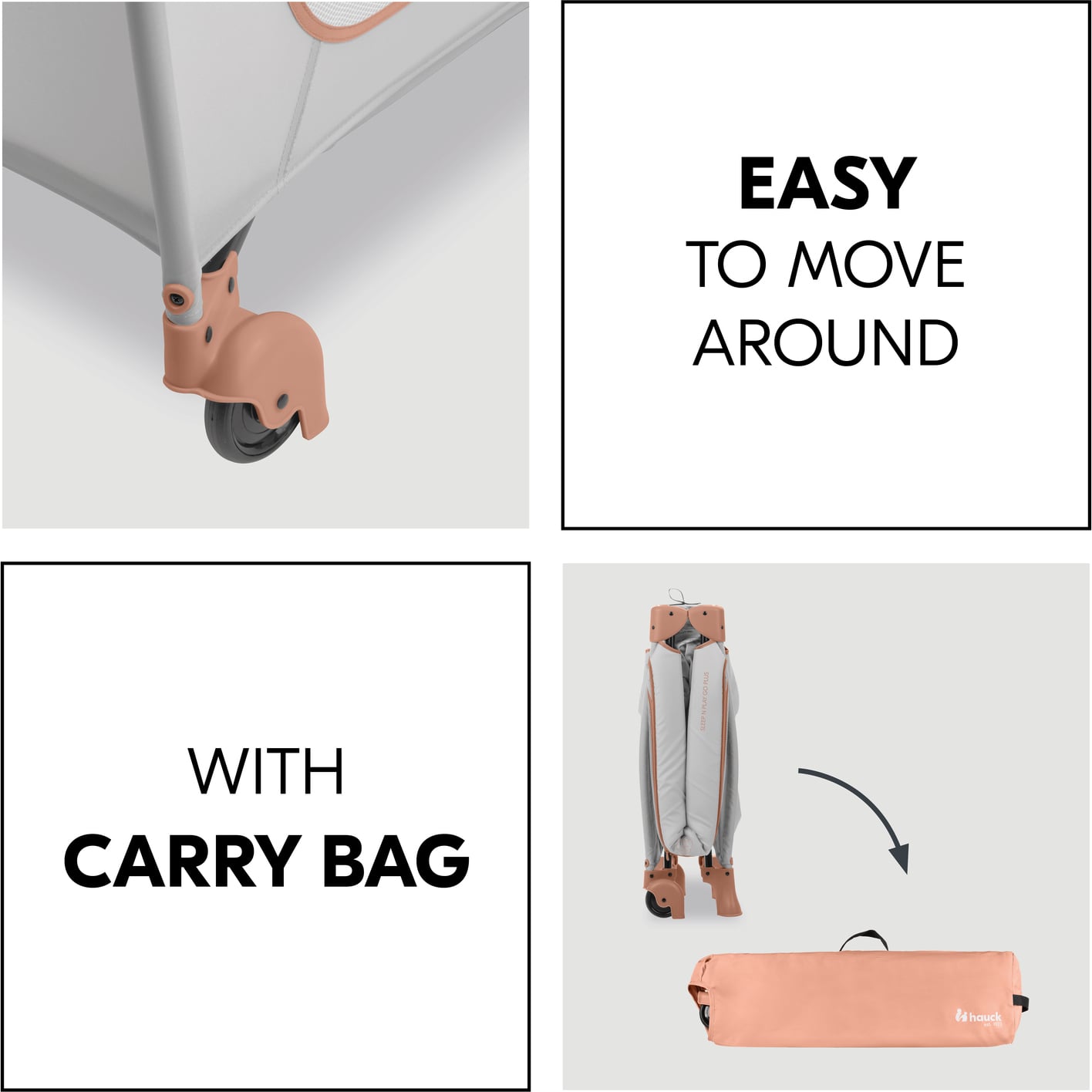 Kaasaskantav Hauck Dream N Play Plus reisivoodi on ideaalne lahendus palju reisivatele lastega peredele. Mugav avamismehhanism muudab voodi kiireks ja kasutusvalmis seadmiseks, isegi vahetult enne magamaminekut. Avatuna on reisivoodi sisepind standardsuuruses 120 x 60 cm, mis lihtsustab näiteks eraldi kokkupandava madratsi ostmist. Voodi võrgust seinad võimaldavad teil oma pisikest uinakute ajal jälgida ja hoida teda võimalikult mugavana isegi suvise kuumuse käes. Kokkupandult on voodi mõõtmed vaid 76 x 24 x 23 cm.