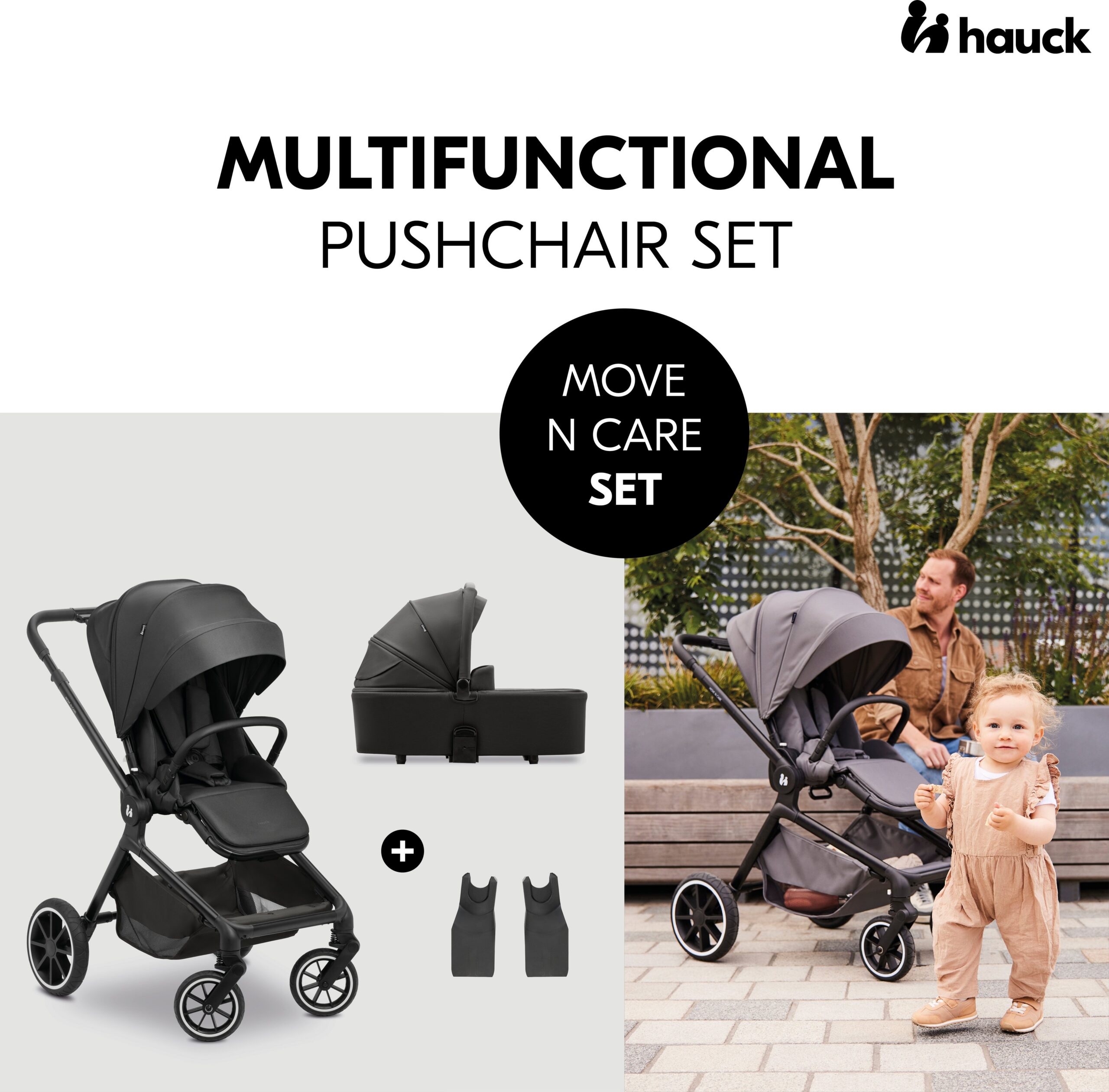 Hauck Move N Care Set kärukomplekt sisaldab käru, kärukatet ja adaptereid.
