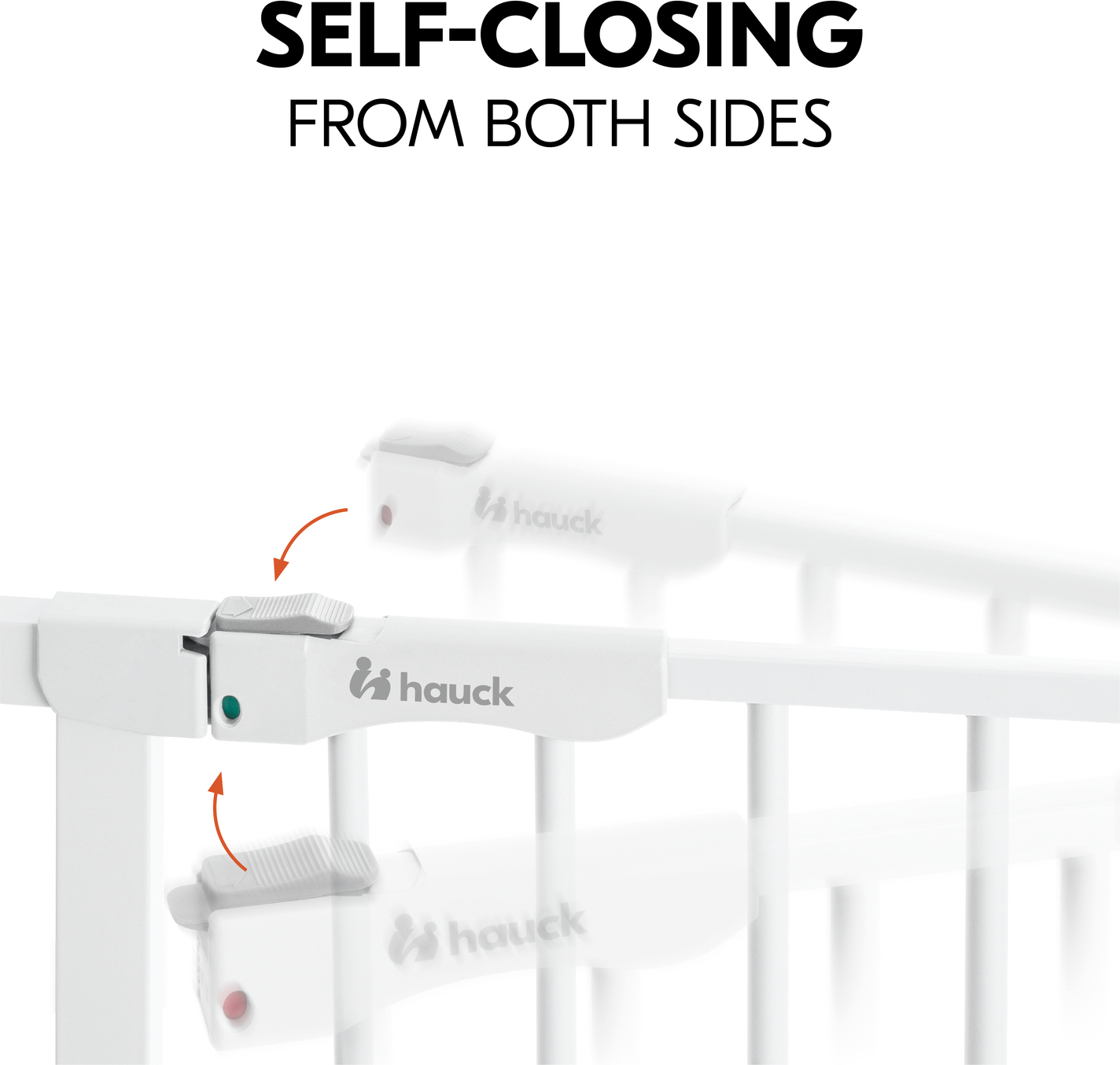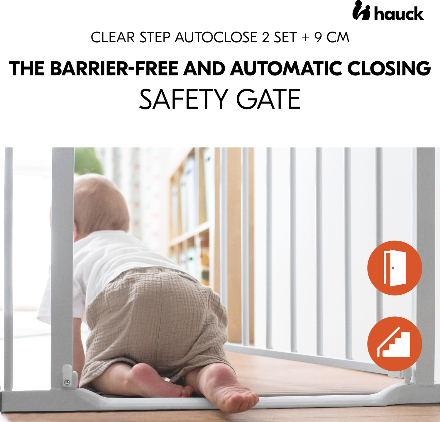 Turvalisus lastega peredele Hauck Clear Step Autoclose 2 turvaväravaga. Peaaegu lävepakuvabast väravast on lihtne läbi astuda isegi väikeste jalgadega ilma komistamata. Kiiresti paigaldatava turvaväravaga takistate liikumist tubadesse või treppidele. Turvaväraval on täiendava turvalisuse tagamiseks isesulguv ukselukk. Värav avaneb ühe käega hõlpsalt mõlemas suunas, kuid integreeritud konksu abil on võimalik takistada avamist ainult ühelt poolt. Võimalus pikendada kuni kahe pikendusdetailiga (pakendis on 1 tk 9 cm pikendusdetail). Materjal on vastupidav teras. Saab paigaldada ka treppide ümaratele külgedele Y-detailide abil (valikuline).